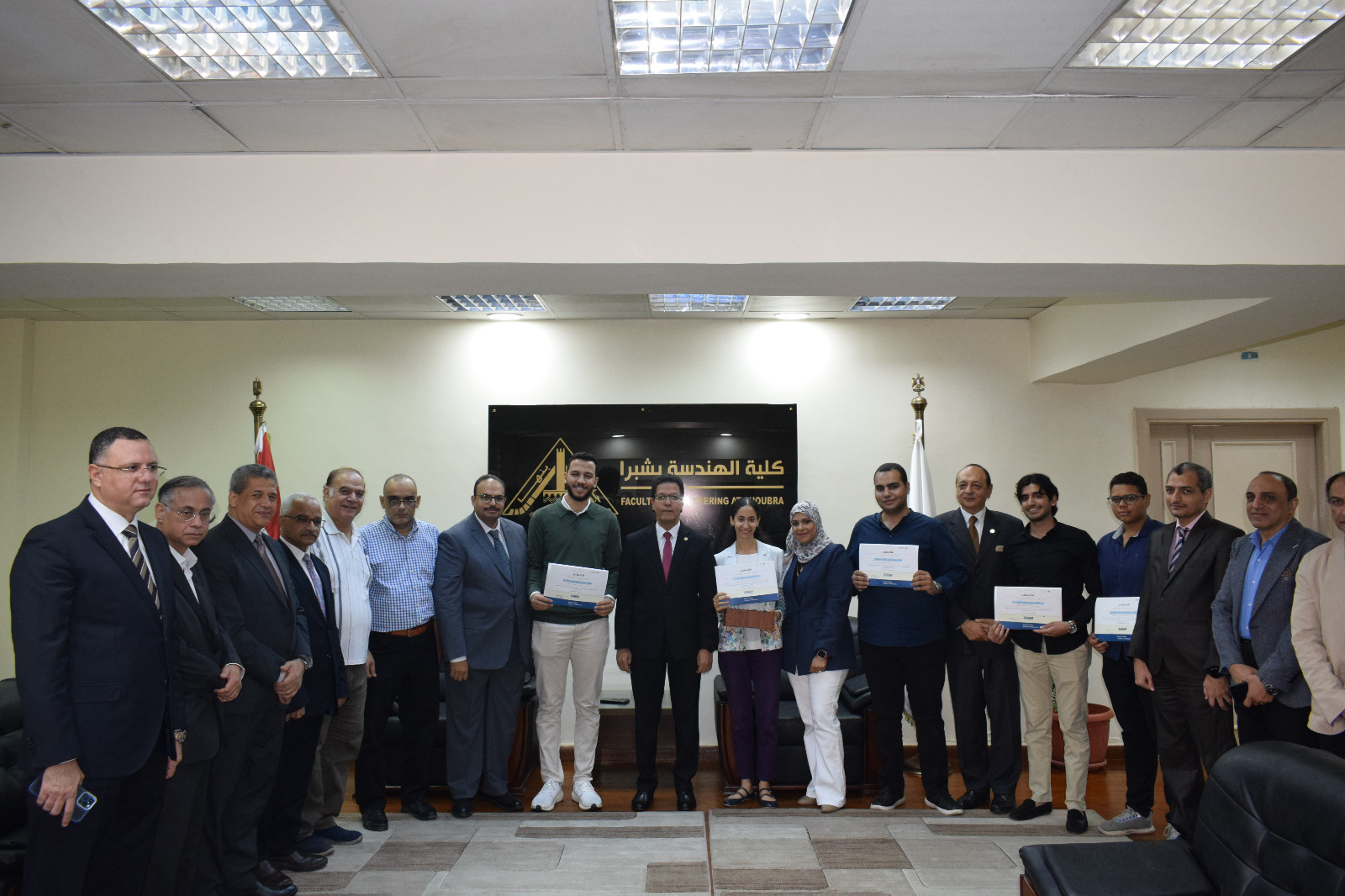 كما قام الدكتور ناصر الجيزاوي رئيس جامعة بنها، ومرافقوه بتكريم عدد من الطلاب الحاصلين على المراكز الأولى في مسابقة البرمجيات على مستوى الجامعات المصرية، والطلاب الحاصلين على المركز الأول في مسابقة المركز القومي لبحوث المياه لابتكار نظام تليمترى ذكي لمراقبة مناسيب المياه.