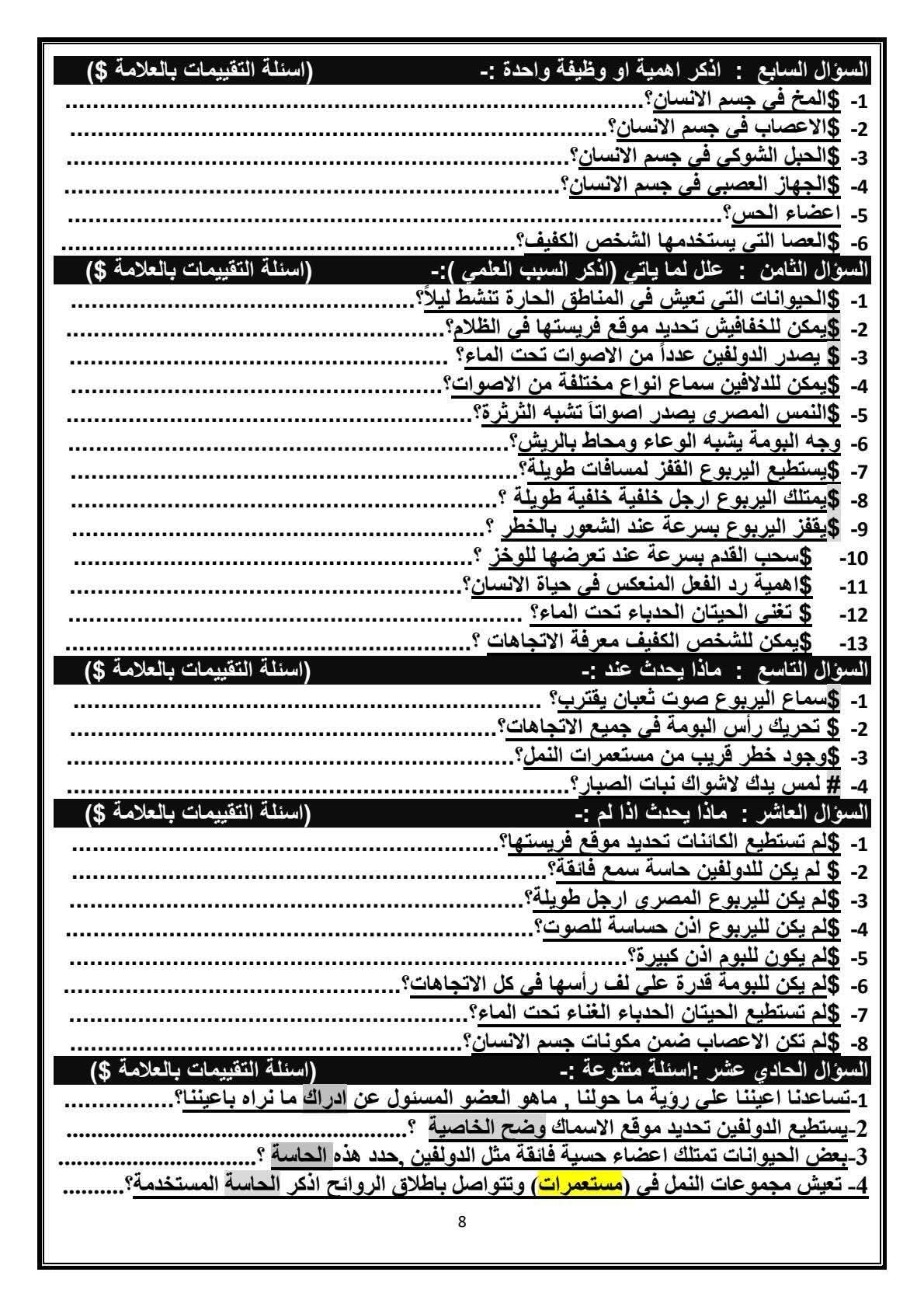 النماذج الاسترشادية للامتحانات للصف الرابع الابتدائي في جميع المواد
