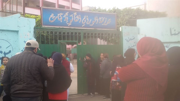 وقد توافد الطلاب منذ الصباح الباكر على المدرسة لتأدية المادة الأولي من امتحانات الصف الأول الثانوي، المعتمد بنظام open book، واستمرت أبواب المدرسة مفتوحة لاستمرار توافد الطلاب حتى بعد التاسعة صباحا.