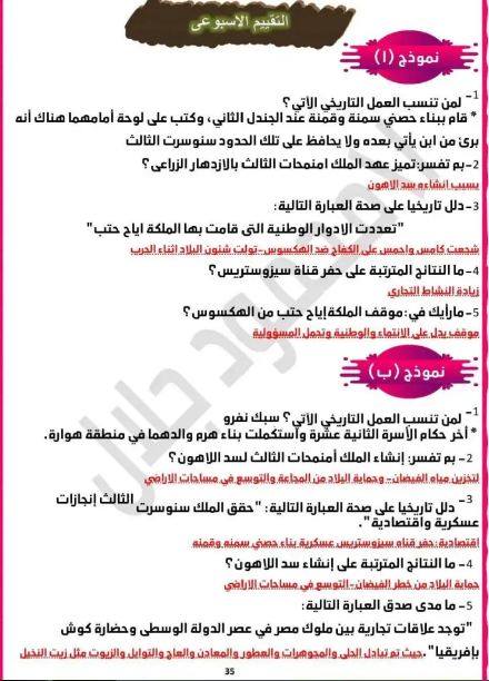 يشمل حل التقييم الأسبوعي دراسات أولى إعدادي الأسبوع السابع ترم أول 2026 عدد كبير من الأسئلة، والتي أجاب عنها المدرسون، ومنها الآتي:
