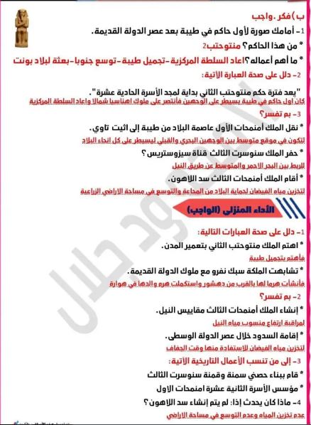 يشمل حل الواجب المنزلي دراسات أولى إعدادي الأسبوع السابع ترم أول 2026 عدد كبير من الأسئلة، والتي أجاب عنها المدرسون، ومنها الآتي: