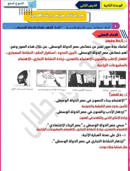 1. سؤال من الدرس الثاني: عصر الدولة الوسطى (عصر الرخاء الاقتصادي)