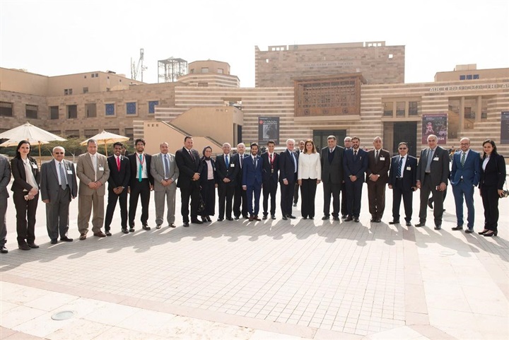 رئيس الجامعة الأمريكية بالقاهرة؛ والدكتور أشرف حاتم مستشار الجامعة ورؤساء الجامعات