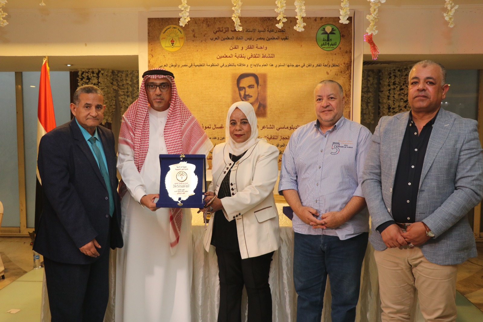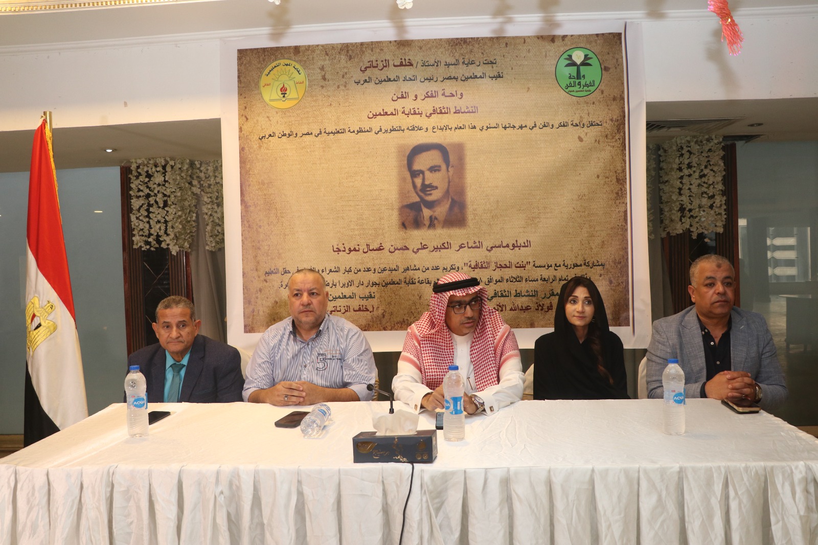احتضنت النقابة العامة للمهن التعليمية بالتعاون مع مؤسسة بنت الحجاز الثقافية فعالية ثقافية كبرى، ضمن استراتيجيتها الراسخة لدعم الإبداع التنويري للمعلم. وتأتي الاحتفالية تحت رعاية الأستاذ خلف الزناتي نقيب المعلمين ورئيس اتحاد المعلمين العرب، مؤكدةً على دور النقابة المحوري في تنمية الفكر وصقل الوعي الثقافي لدى جموع المعلمين.