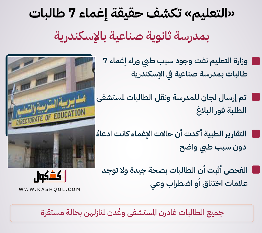 «التعليم» تكشف حقيقة إغماء 7 طالبات بمدرسة ثانوية صناعية بالإسكندرية «انفوجراف»