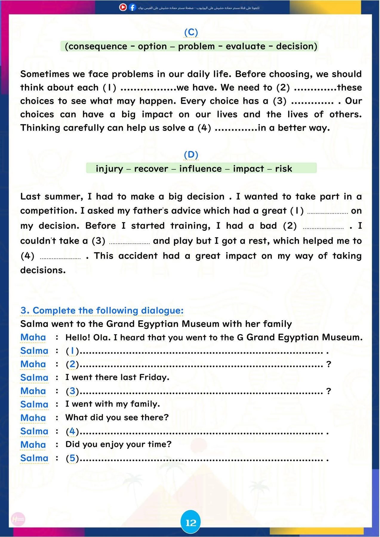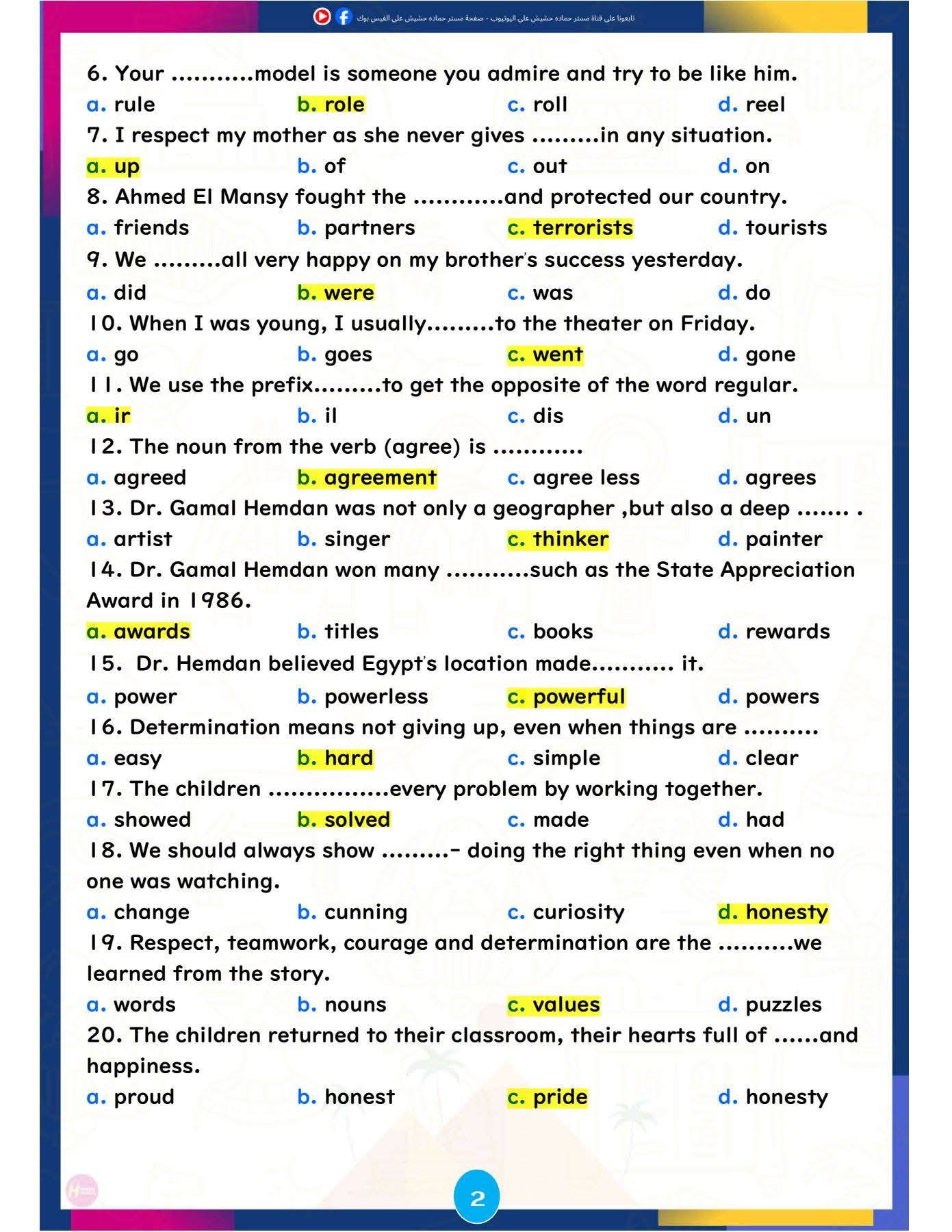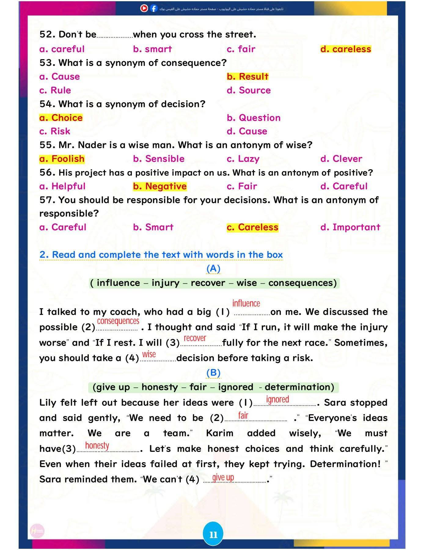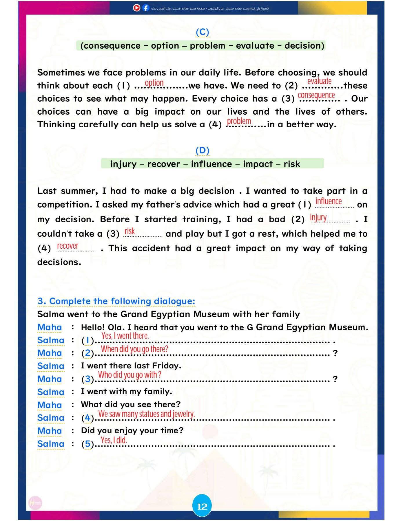 وتركزت المراجعة على تبسيط النقاط اللغوية الأساسية، وإتاحة تدريبات تطبيقية تساعد الطلاب على تحسين مهارات القراءة والكتابة والاستعداد للاختبارات المقبلة، ننشرها كالتالي:
