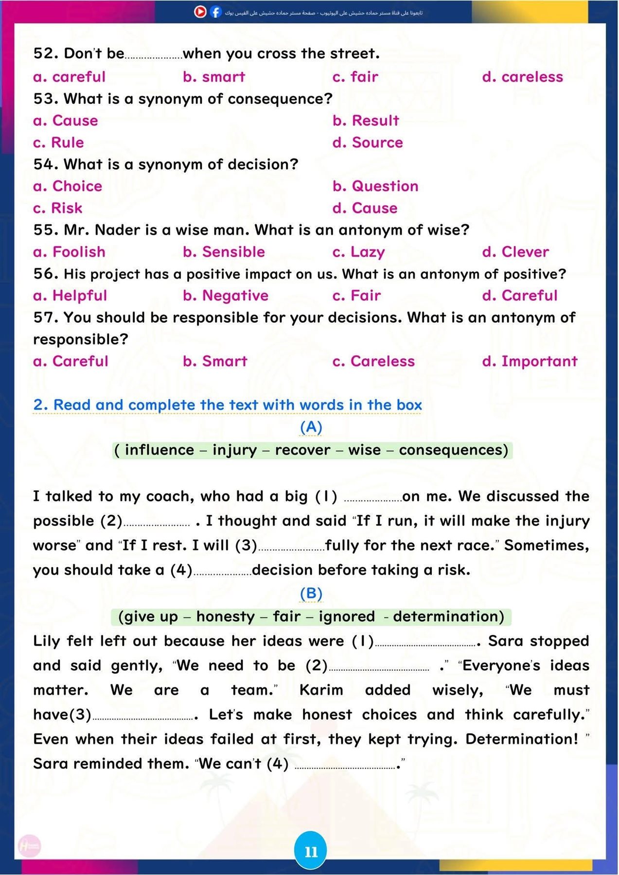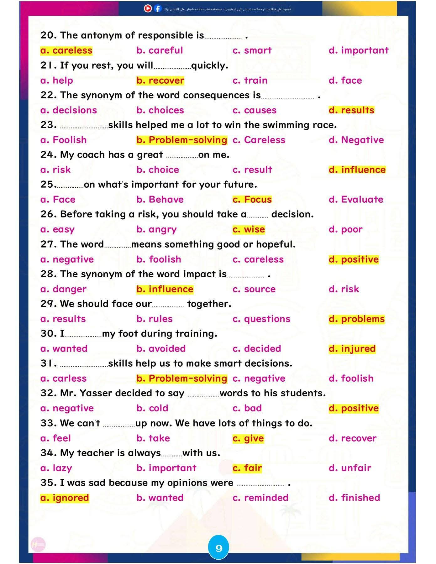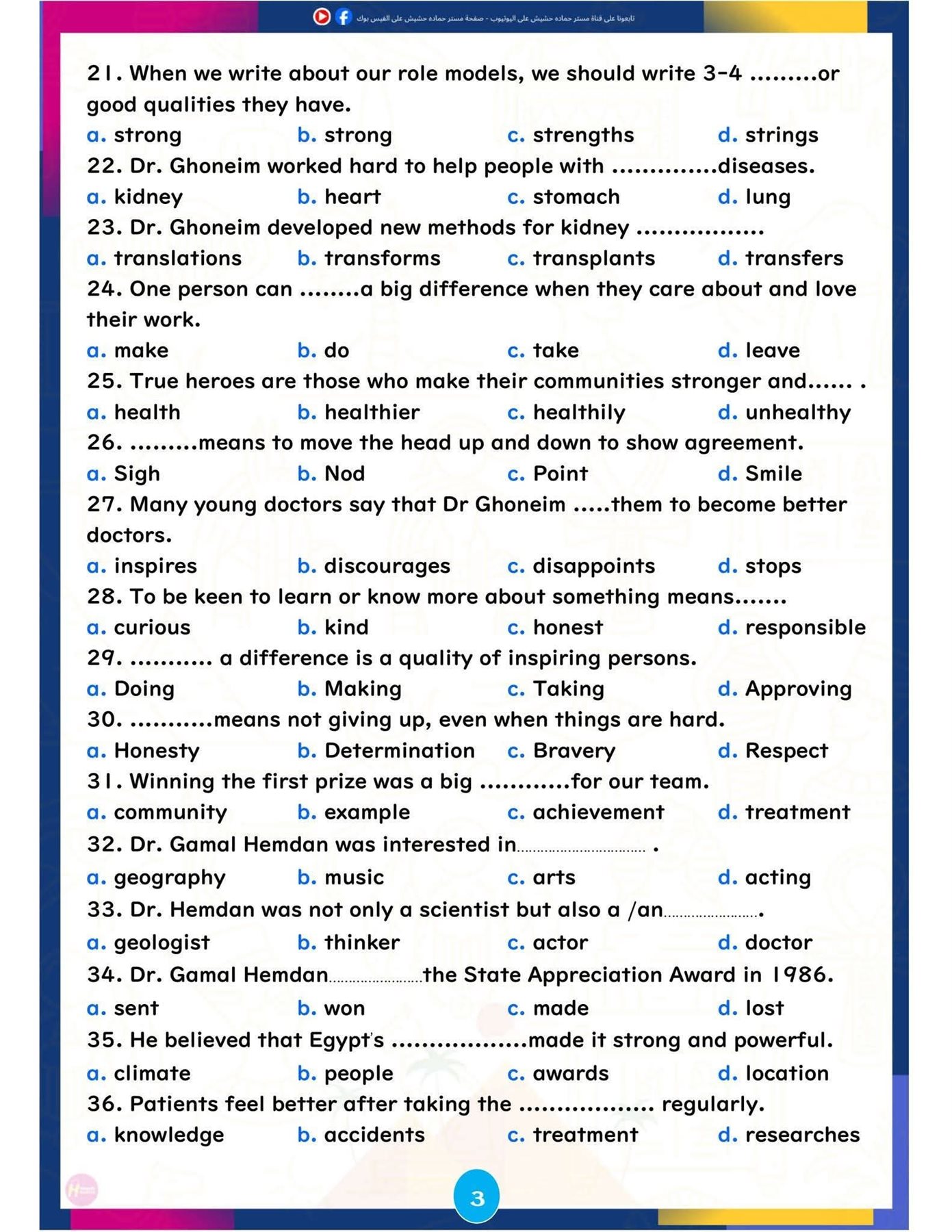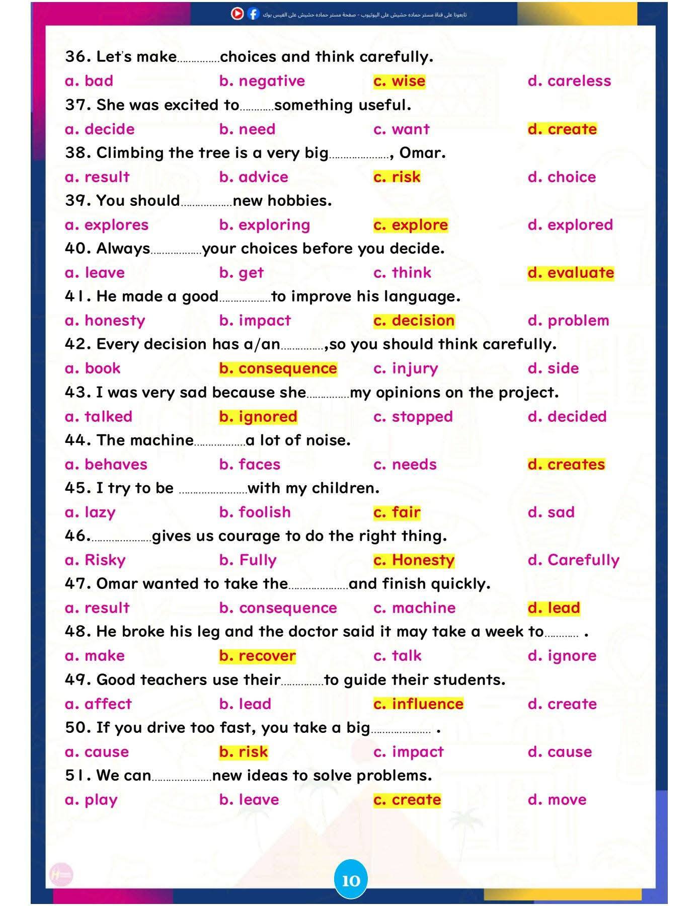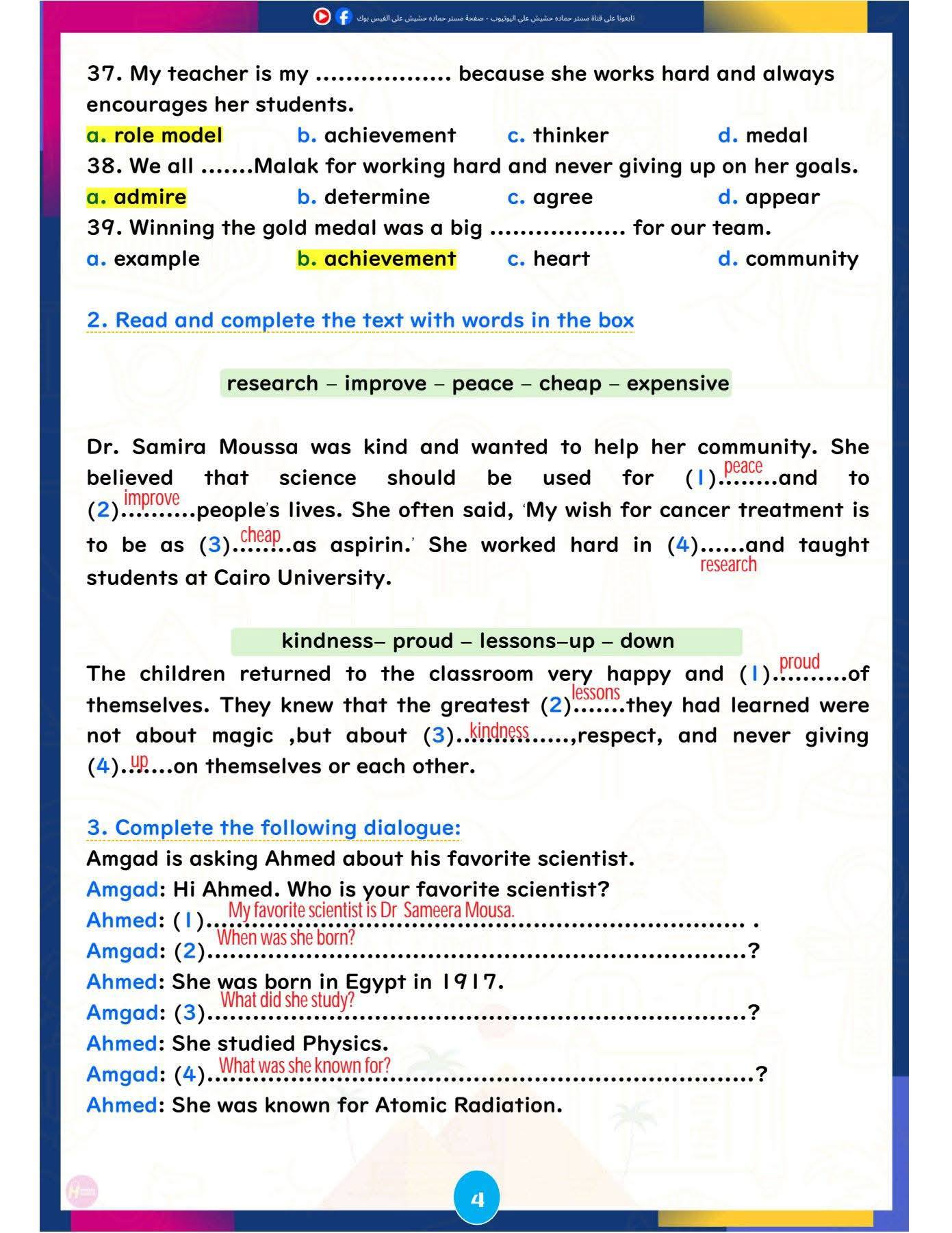 وتركزت المراجعة على تبسيط النقاط اللغوية الأساسية، وإتاحة تدريبات تطبيقية تساعد الطلاب على تحسين مهارات القراءة والكتابة والاستعداد للاختبارات المقبلة، ننشرها كالتالي: