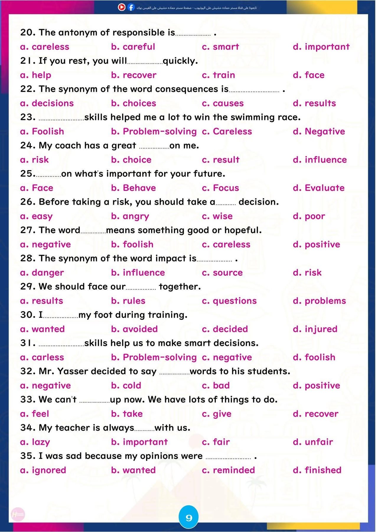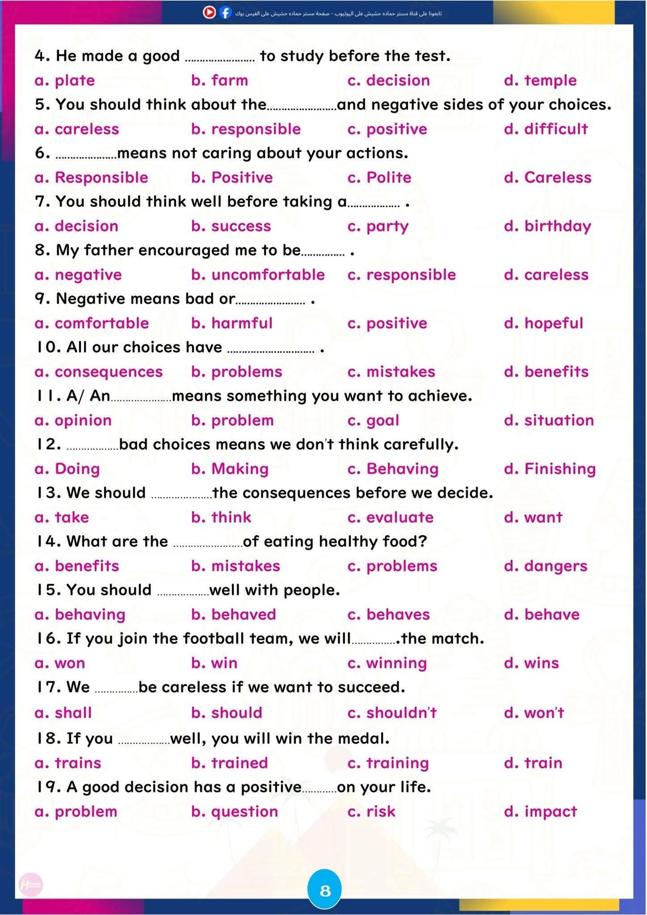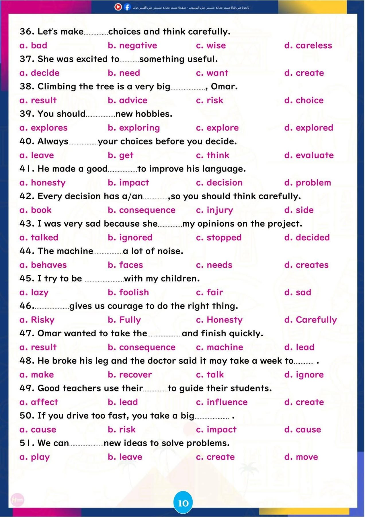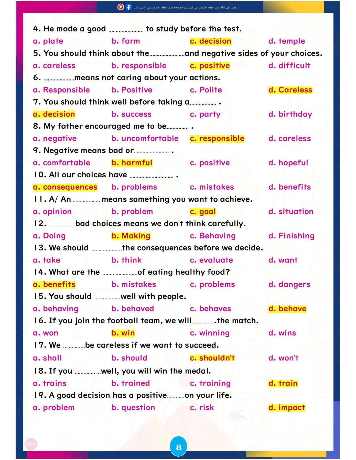 وتركزت المراجعة على تبسيط النقاط اللغوية الأساسية، وإتاحة تدريبات تطبيقية تساعد الطلاب على تحسين مهارات القراءة والكتابة والاستعداد للاختبارات المقبلة، ننشرها كالتالي: