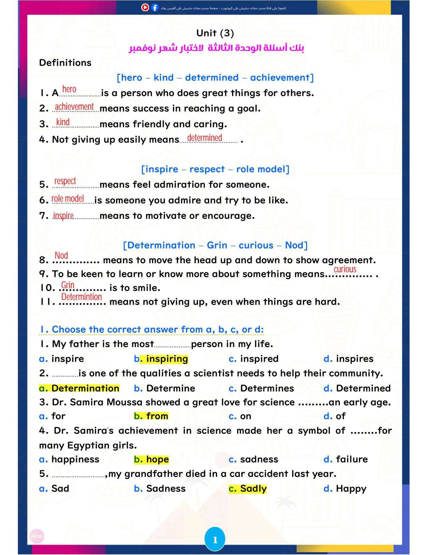 مراجعة نوفمبر في اللغة الإنجليزية للصف الأول الإعدادي