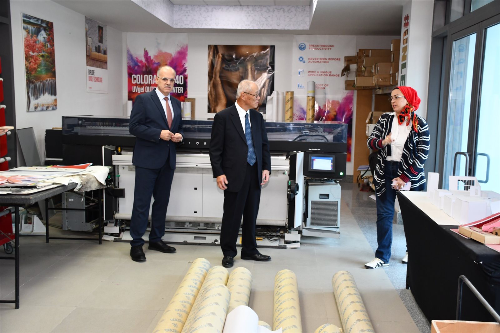 وعقب انتهاء المحادثات الثنائية، قام السفير إيواي بجولة تفقدية داخل المركز المتكامل لخدمات الطباعة المقام بالجامعة الألمانية بالقاهرة بالتعاون مع شركة كانون اليابانية برفقة الدكتور ياسر حجازي، رئيس الجامعة الألمانية بالقاهرة.
