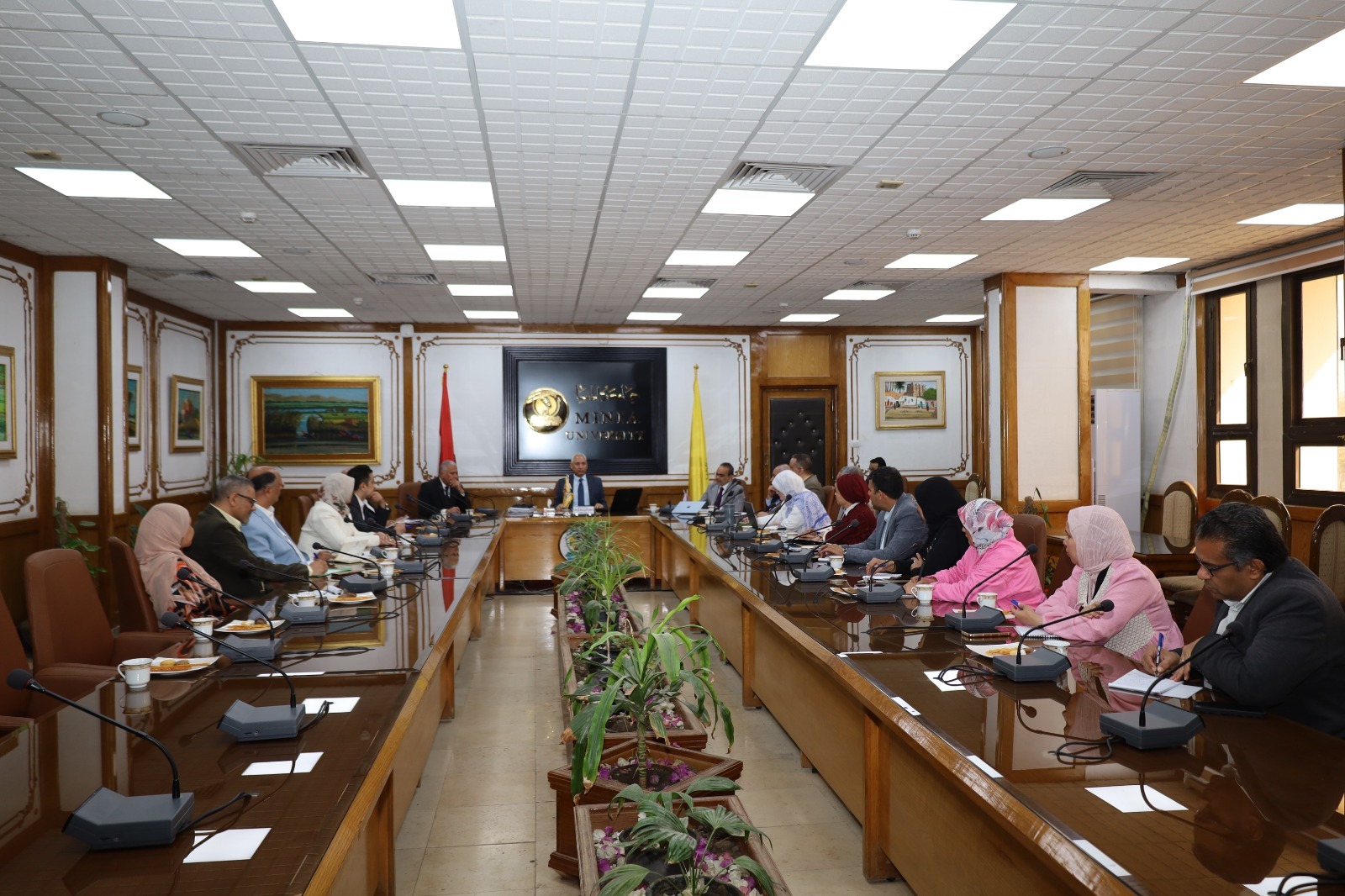 رئيس جامعة المنيا يناقش إعداد الخطة الاستراتيجية للجامعة 2026 – 2030