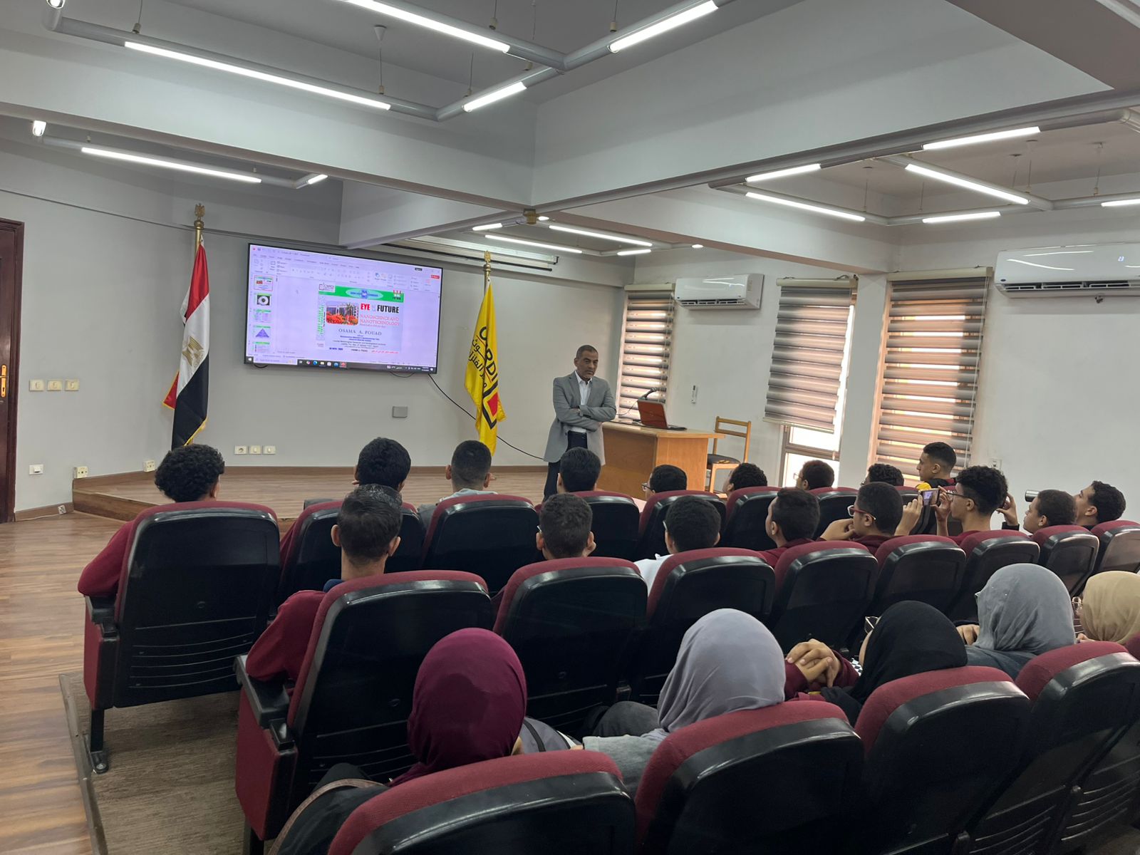 وخلال الزيارة، استقبل الطلاب كل من الدكتور أسامة فؤاد، رئيس قسم مركبات وتكنولوجيا النانو، والدكتورة علياء سالم، أستاذ مساعد تكنولوجيا النانو، واستمع الطلاب إلى محاضرة علمية متميزة حول علوم وتقنيات النانو قدمها الدكتورة أسامة فؤاد، أعقبها جولة علمية داخل عدد من الأقسام شملت، قسم تكنولوجيا ومركبات النانو، قسم تكنولوجيا البطاريات، بالإضافة إلى قسم الخدمات الفنية.