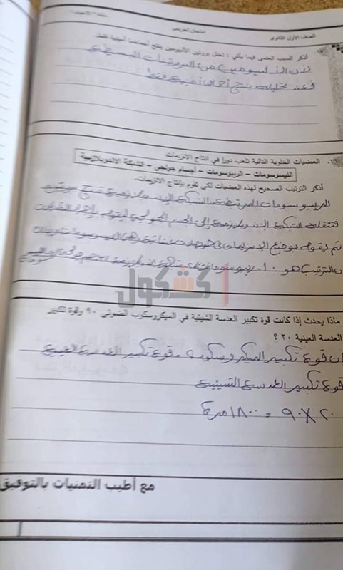 بالصور.. «كشكول» ينشر امتحان مادة الأحياء للأول الثانوي