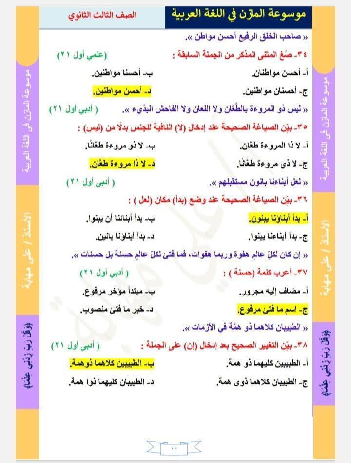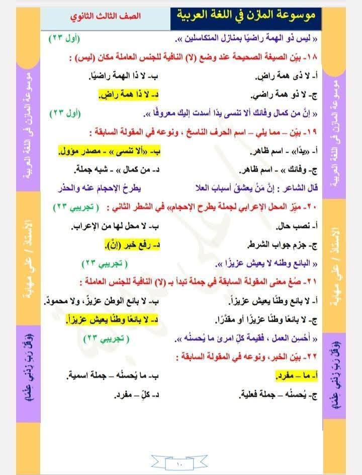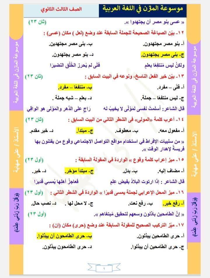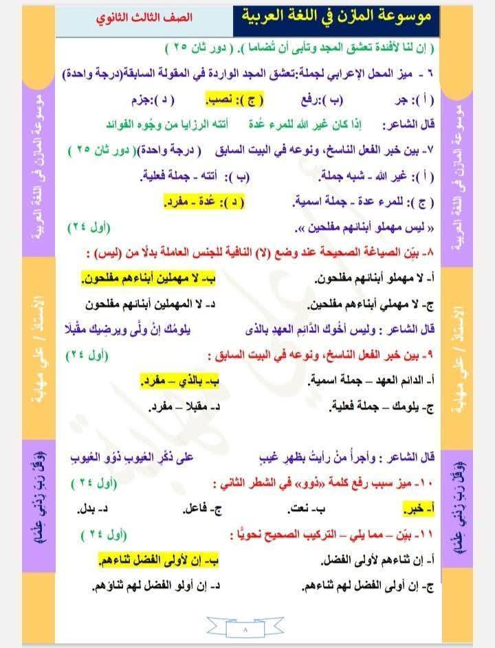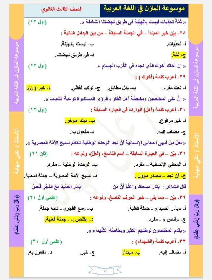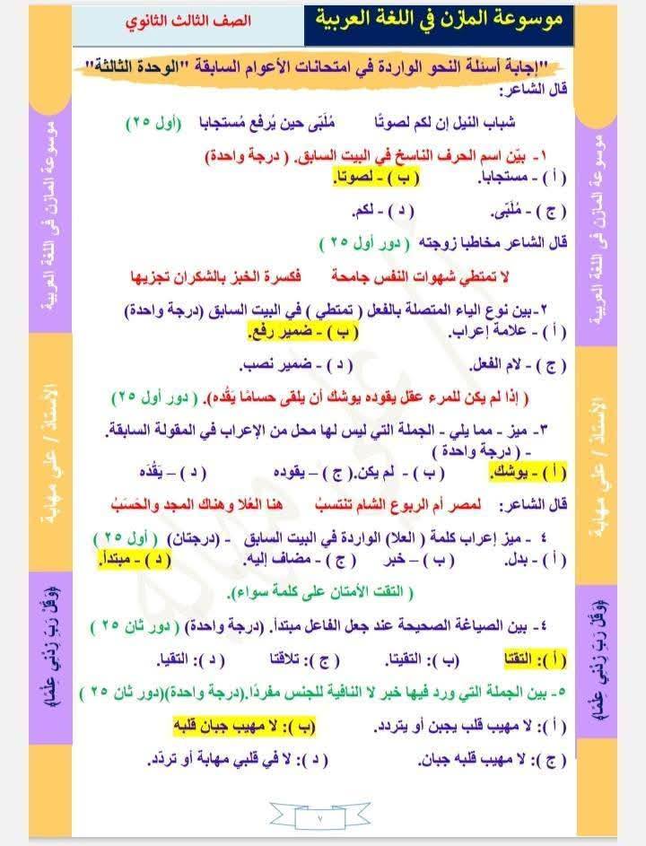 الوحدة الثالثة.. أسئلة النحو الواردة في امتحانات الثانوية العامة للأعوام السابقة