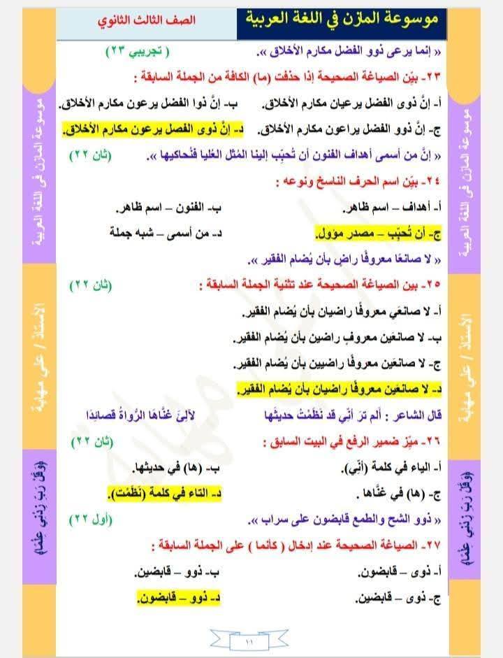 ينشر «كشكول» مجموعة من أسئلة النحو من امتحانات السنوات السابقة للصف الثالث الثانوي العام بالدورين الأول والثاني.