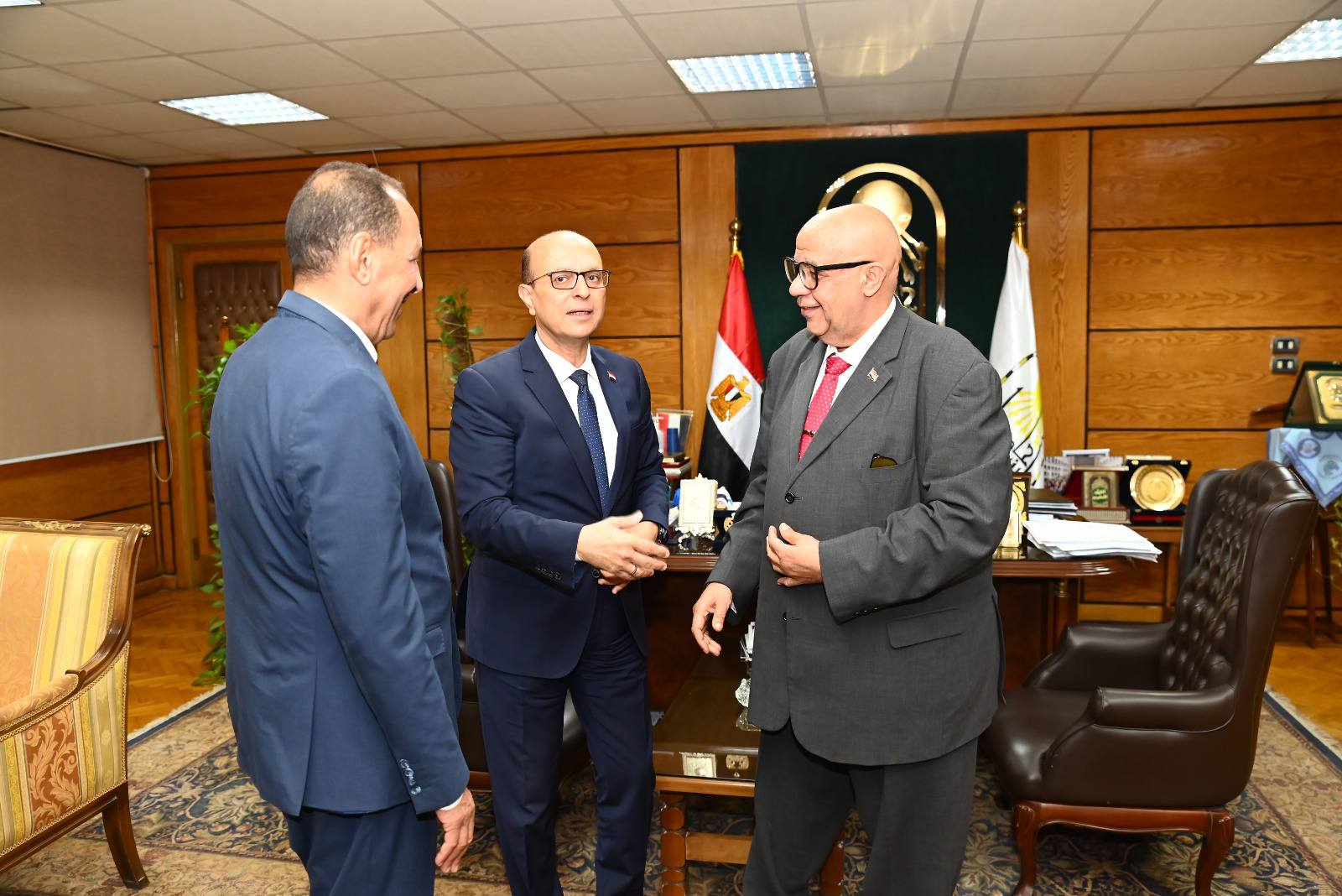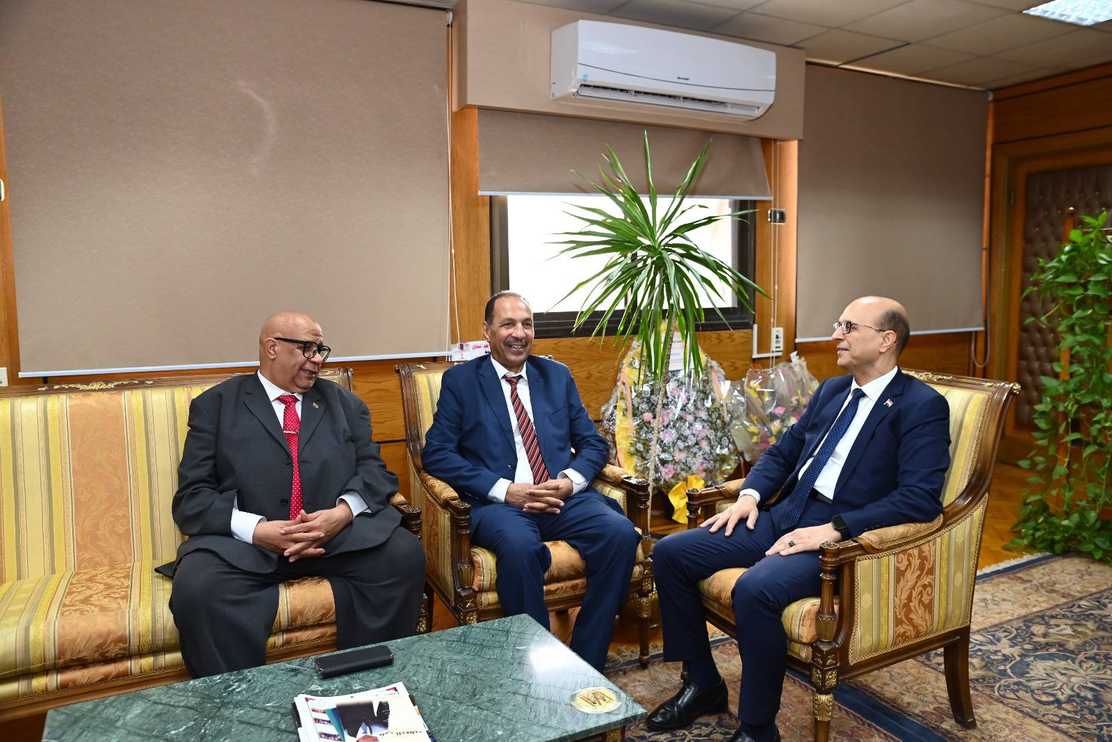 رئيس جامعة أسيوط يستقبل الدكتور حمدي حسين ورئيس جامعة سفنكس خلال زيارة علمية