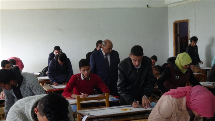 بصفة منتظمة؛ للإطمئنان على سير العملية الامتحانية بهدوء تام كي يؤدى الطلاب امتحانتهم