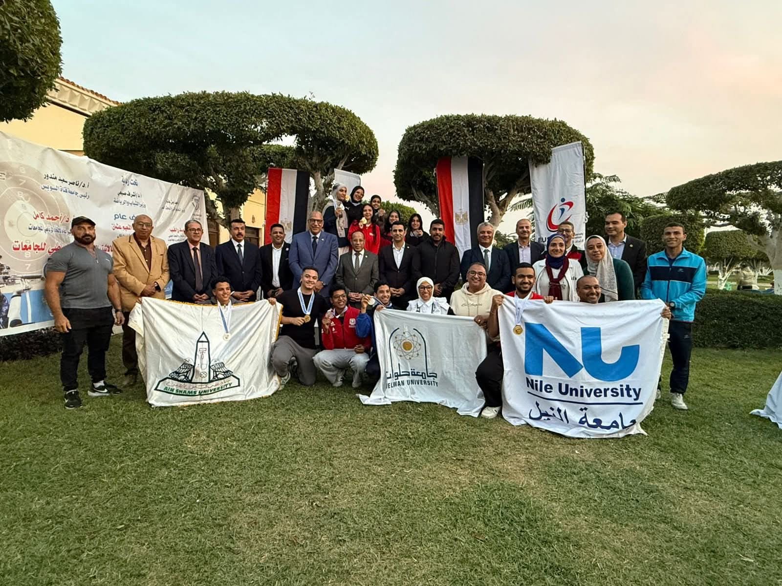 وذلك بطولة الجامعات للرماية، تحت رعاية الدكتور محمد أيمن عاشور وزير التعليم العالي والبحث العلمي، والدكتور أشرف صبحي وزير الشباب والرياضة، والدكتور ناصر سعيد مندور رئيس جامعة قناة السويس، وبإشراف عام الدكتور أحمد راغب مساعد وزير التعليم العالي للحياة الطلابية ونائب رئيس الاتحاد الرياضي المصري للجامعات، والدكتور محمد عبد النعيم عثمان نائب رئيس الجامعة لشئون التعليم والطلاب، والدكتور أحمد كامل مهدي سكرتير عام الاتحاد الرياضي المصري للجامعات.