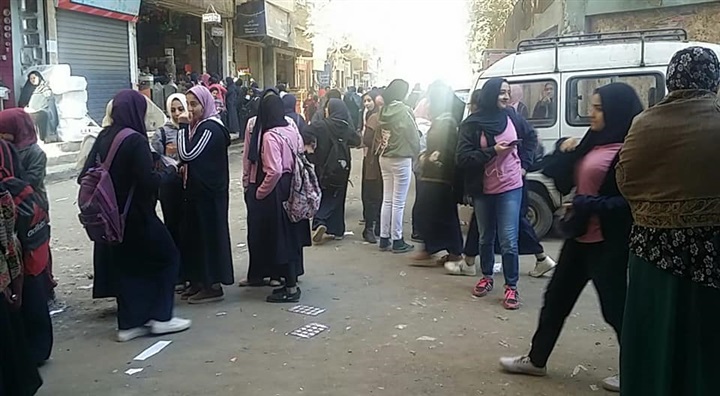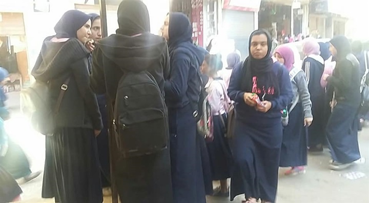بالصور.. طالبات أحمد زويل الثانوية يرفعن شعار «ربنا يكرم في الباقي»