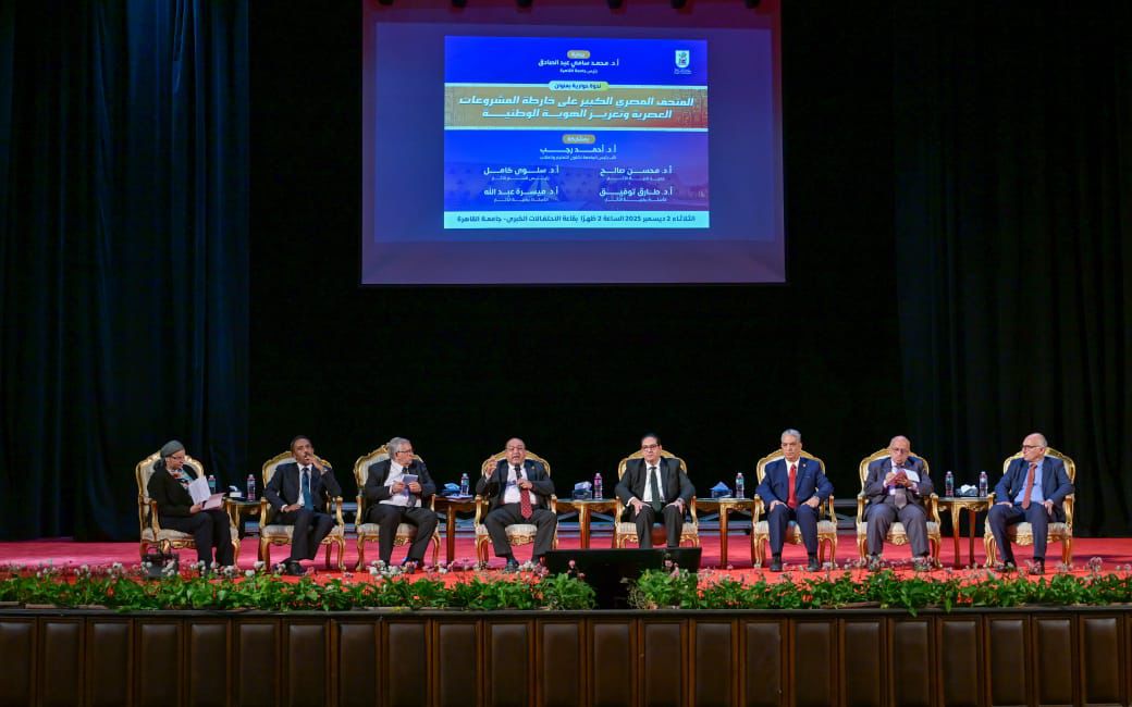 شهدت قاعة الاحتفالات الكبرى جامعة القاهرة، تحت رعاية وحضور الدكتور محمد سامي عبدالصادق رئيس الجامعة، ندوة حوارية تحت عنوان "المتحف المصري الكبير علي خارطة المشروعات العصرية وتعزيز الهوية الوطنية"، شارك فيها كل من الدكتور أحمد رجب نائب رئيس الجامعة لشئون التعليم والطلاب، والدكتور محسن صالح عميد كلية الآثار، والدكتورة سلوى كامل رئيس قسم الآثار، والدكتور طارق توفيق الأستاذ بكلية الآثار، والدكتورة ميسرة عبدالله الأستاذ بكلية الآثار.