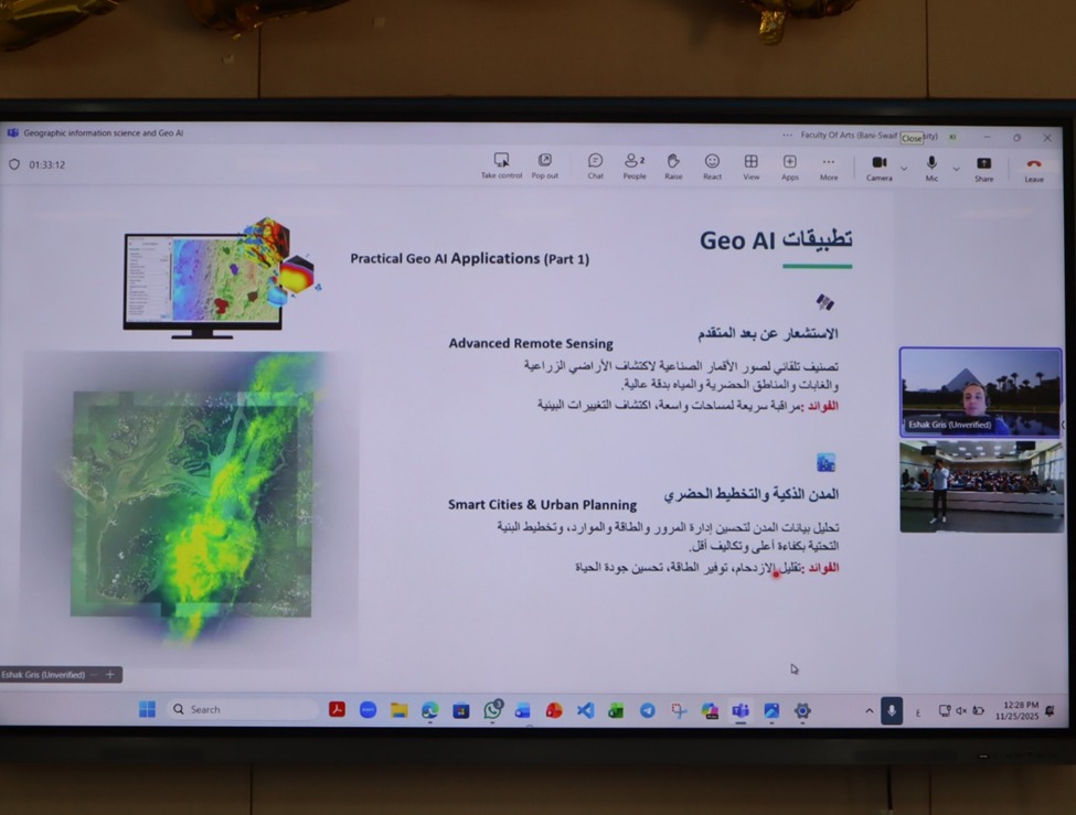 كما أكد رئيس جامعة بني سويف، أهمية تناول المحاضرة للعناصر الأساسية لنظم المعلومات الجغرافية (GIS)، موضحًا مكوناته ووظائفه وأنواع البيانات المكانية وغير المكانية التي يعتمد عليها.