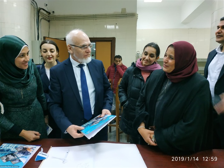 استقبلت كلية الصيدلة جامعة عين شمس برئاسة الدكتورة مها فاروق عبدالغني عميد الكلية وفدا من المؤسسة الفيدرالية الحكومية بأكاديمية موسكو للطب البيطري والتكنولوجيا الحيوية ( K. l .Scryabin, Russia) برئاسة الدكتور داود عبد السيدوفيتش ديفريشوف رئيس قسم المناعة والبيوتكنولوچى بأكاديمية موسكو الحكومية والدكتورة سعيده نوربيفنا مارزانفا.