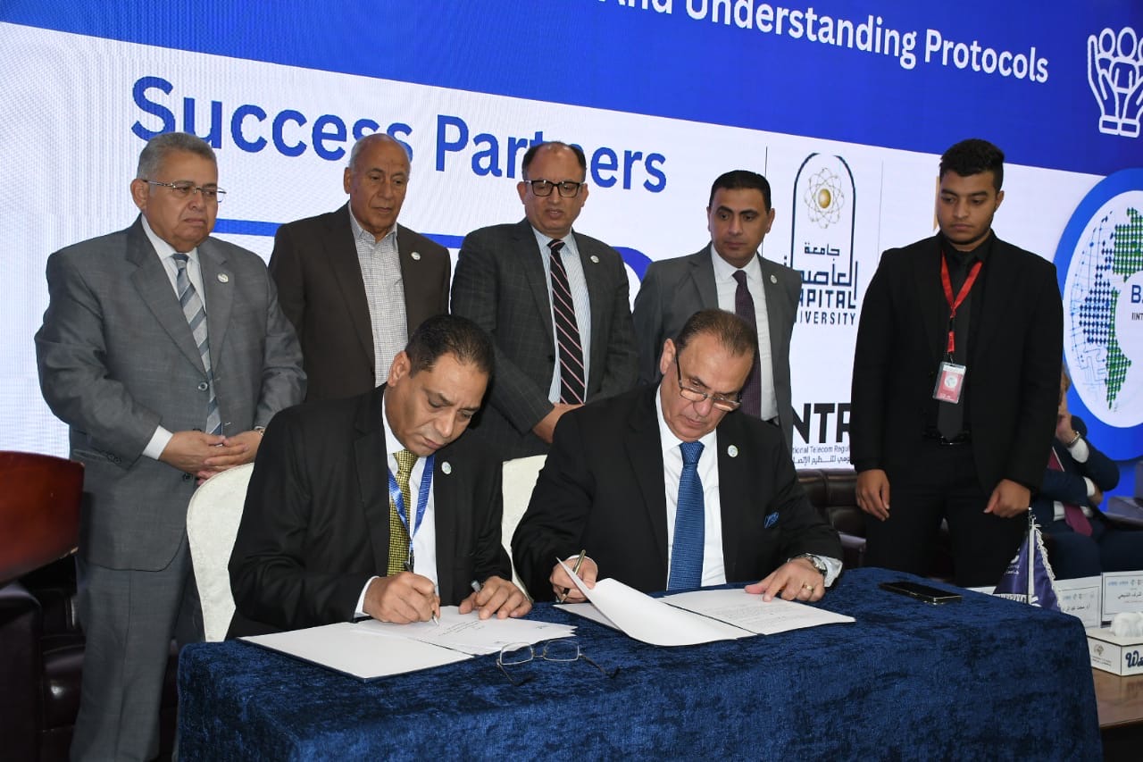 شهد الدكتور السيد قنديل رئيس جامعة العاصمة توقيع بروتوكول تعاون علمي مع جامعة بدر، وذلك في مجال برامج الدراسات العليا بكلية إدارة الأعمال والعلوم المالية والإدارية جامعة بدر، وكلية التجارة وإدارة الأعمال جامعة العاصمة، وذلك على هامش قمة التكنولوجيا والأعمال الدولية 2025 التي تقام تحت شعار: "تكنولوجيا ذكية... لأعمال أكثر ذكاءً".