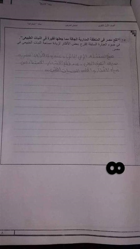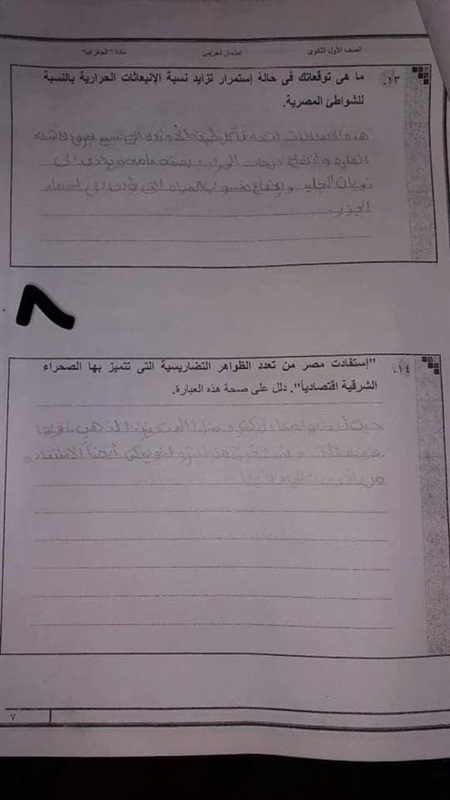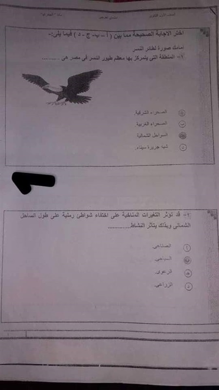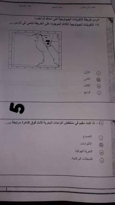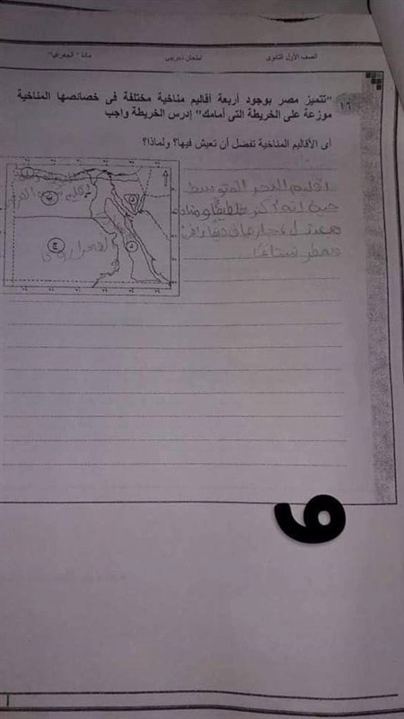 امتحان الجغرافية للصف الأول الثانوي على صفحات التواصل الاجتماعي