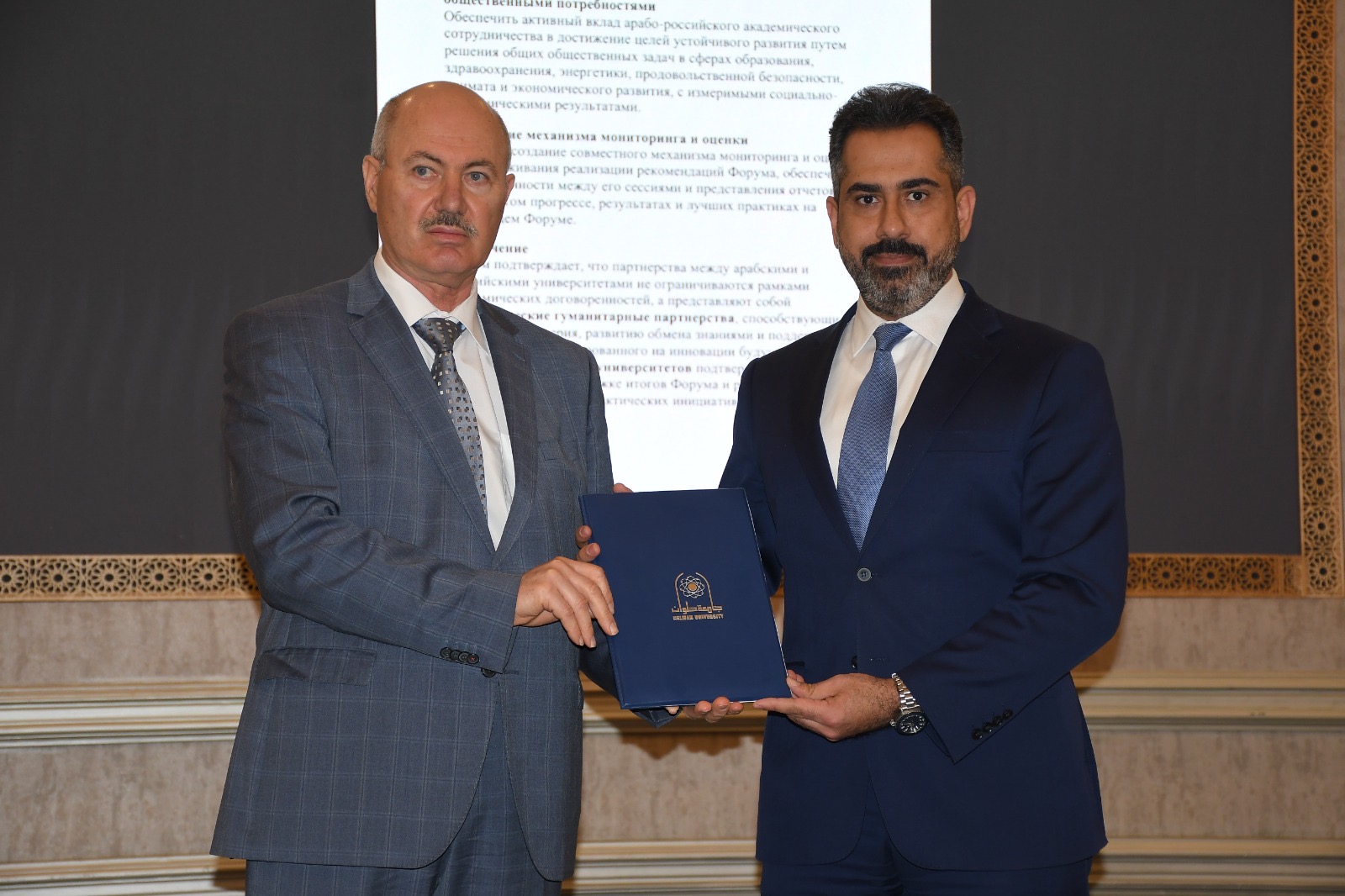 وقد جاء المنتدى الخامس لرؤساء الجامعات العربية والروسية، ليؤكد عمق الدعم السياسي والدبلوماسي والأكاديمي من القيادات العليا في الجانبين، وليضع أسسًا جديدة للتعاون الأكاديمي بين الجامعات العربية والروسية.