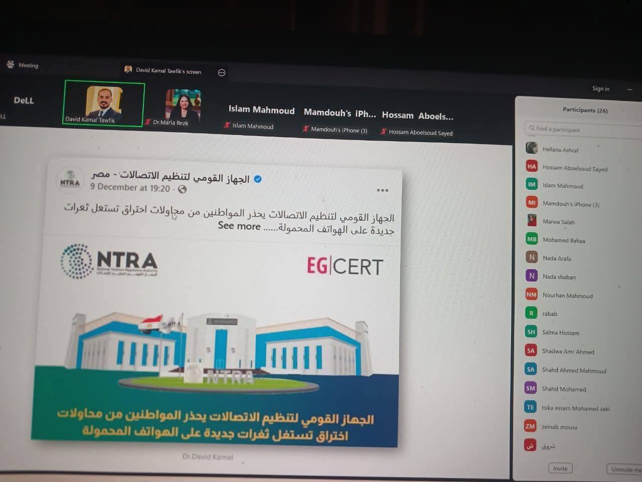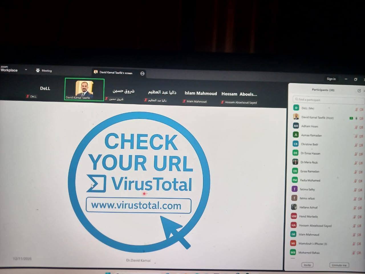 وقد حاضر في الورشة الدكتور ديڤيد كمال توفيق، مهندس نظم المعلومات بكلية الحاسبات والذكاء الاصطناعي جامعة مدينة السادات، والمدرب المعتمد من المجلس الأعلى للجامعات للتحول الرقمي.