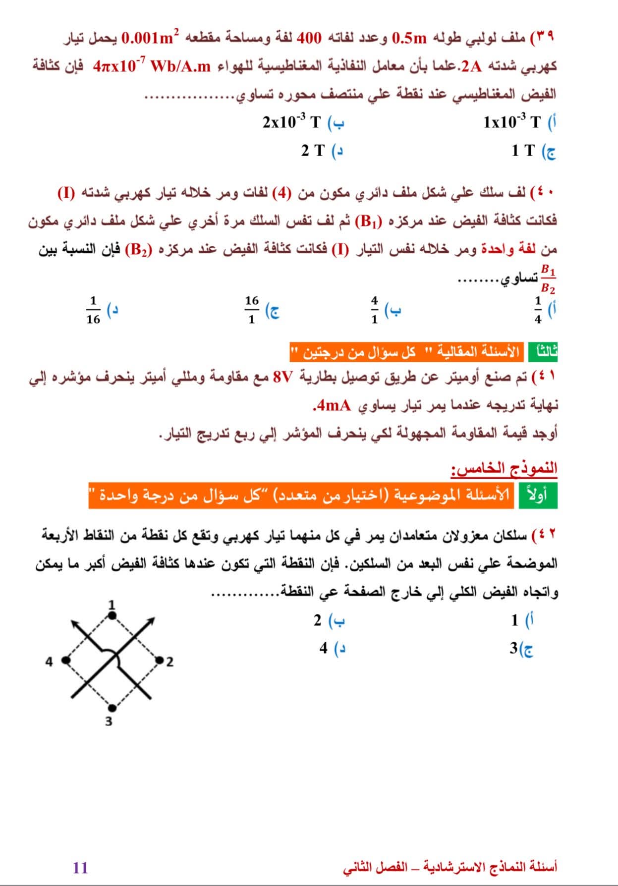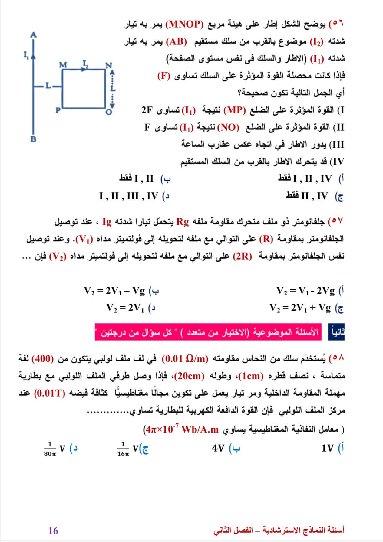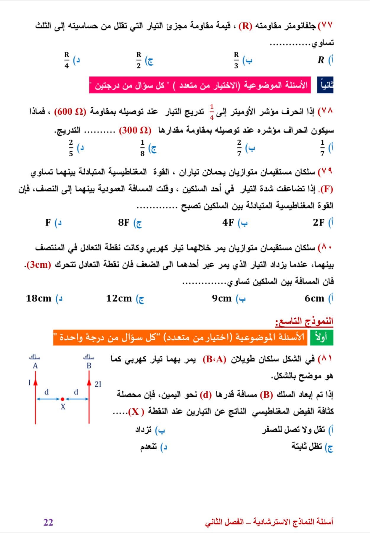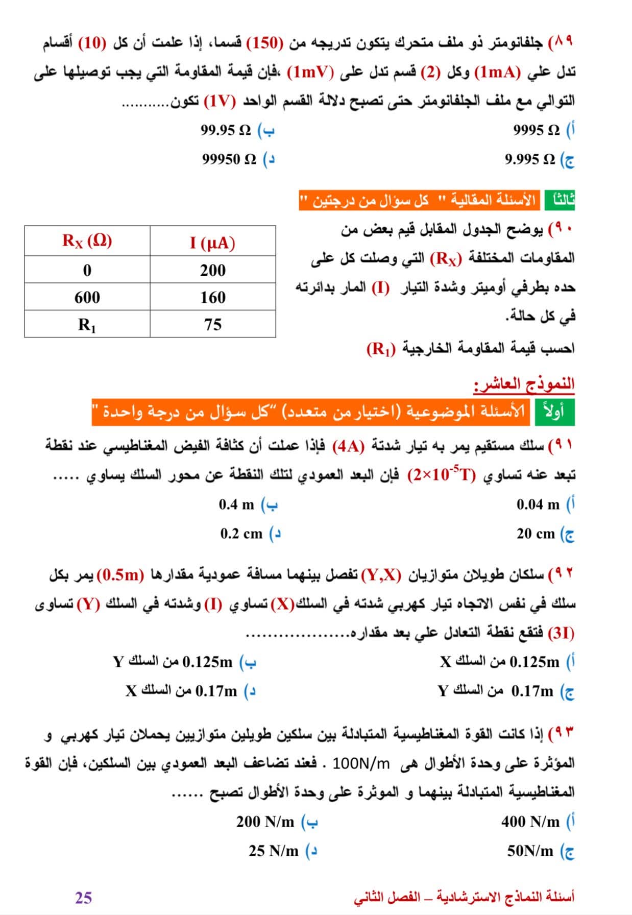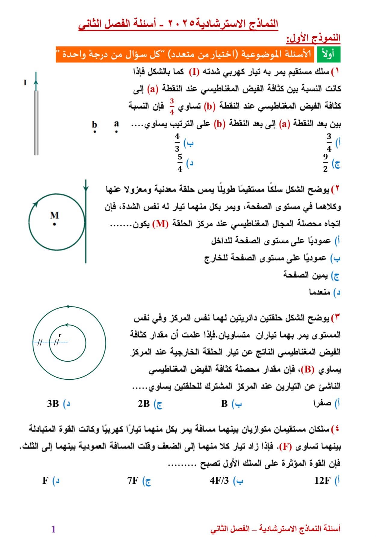نماذج امتحان مادة الفيزياء ثانوية عامة 2025