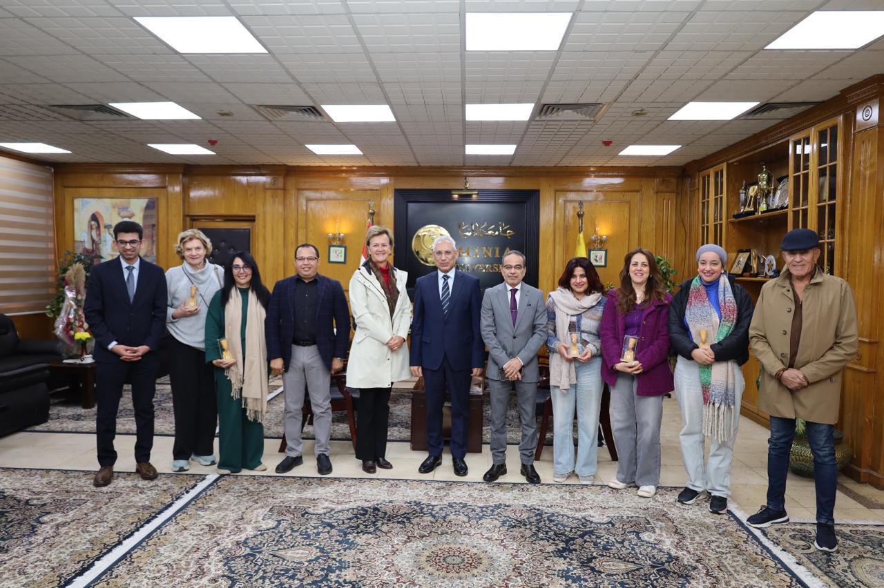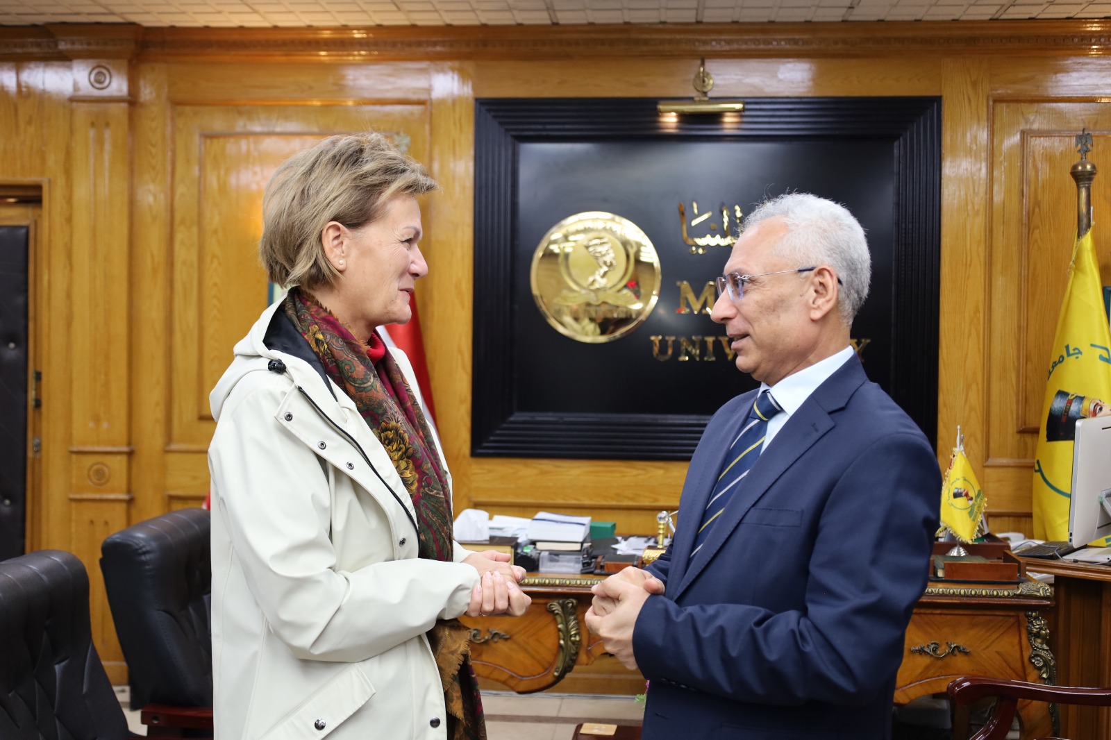 رئيس جامعة المنيا يبحث تعزيز التعاون مع رئيسة الاتحاد الأوروبي لدى مصر