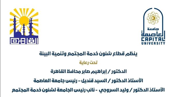 يقام المعرض تحت رعاية الدكتور إبراهيم صابر محافظ القاهرة، والدكتور السيد قنديل رئيس جامعة العاصمة، والدكتور وليد السروجي نائب رئيس جامعة العاصمة لشئون خدمة المجتمع وتنمية البيئة.