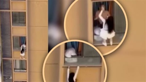 وأظهرت اللقطات السيدة وهى تتسلق الجدران الخارجية للمبنى وأنابيب المياه مرتدية تنورة بيضاء قصيرة، بينما تشبثت بأطراف المبنى فى الطابق العاشر، في مجمع سكني بمقاطعة قوانغدونج، جنوب الصين، بتاريخ 30 نوفمبر الماضي.