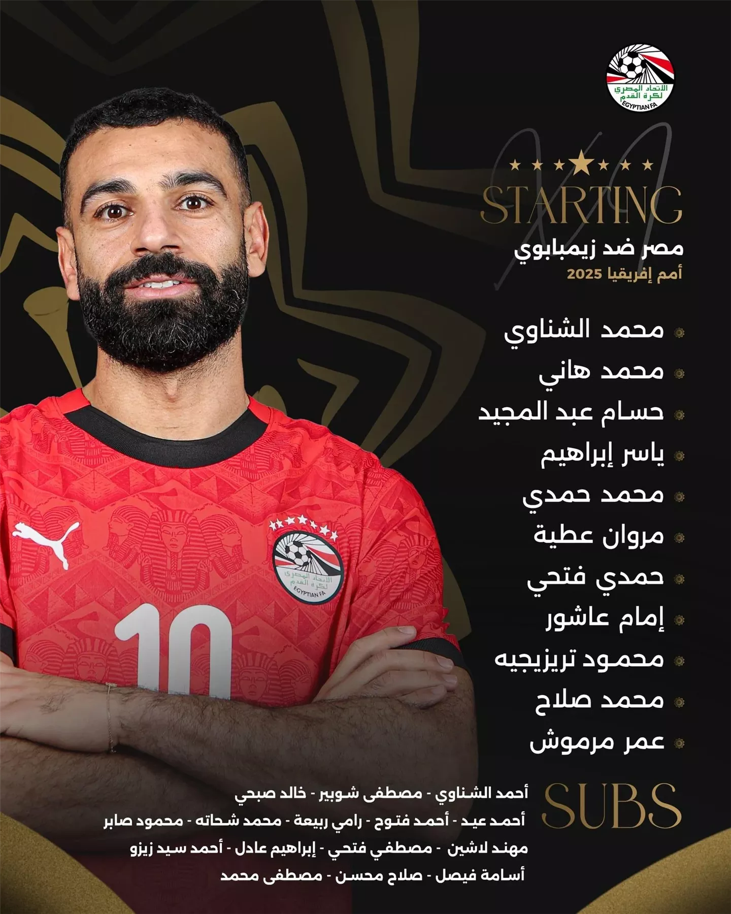 تشكيل منتخب مصر ضد زيمبابوي على النحو التالي: