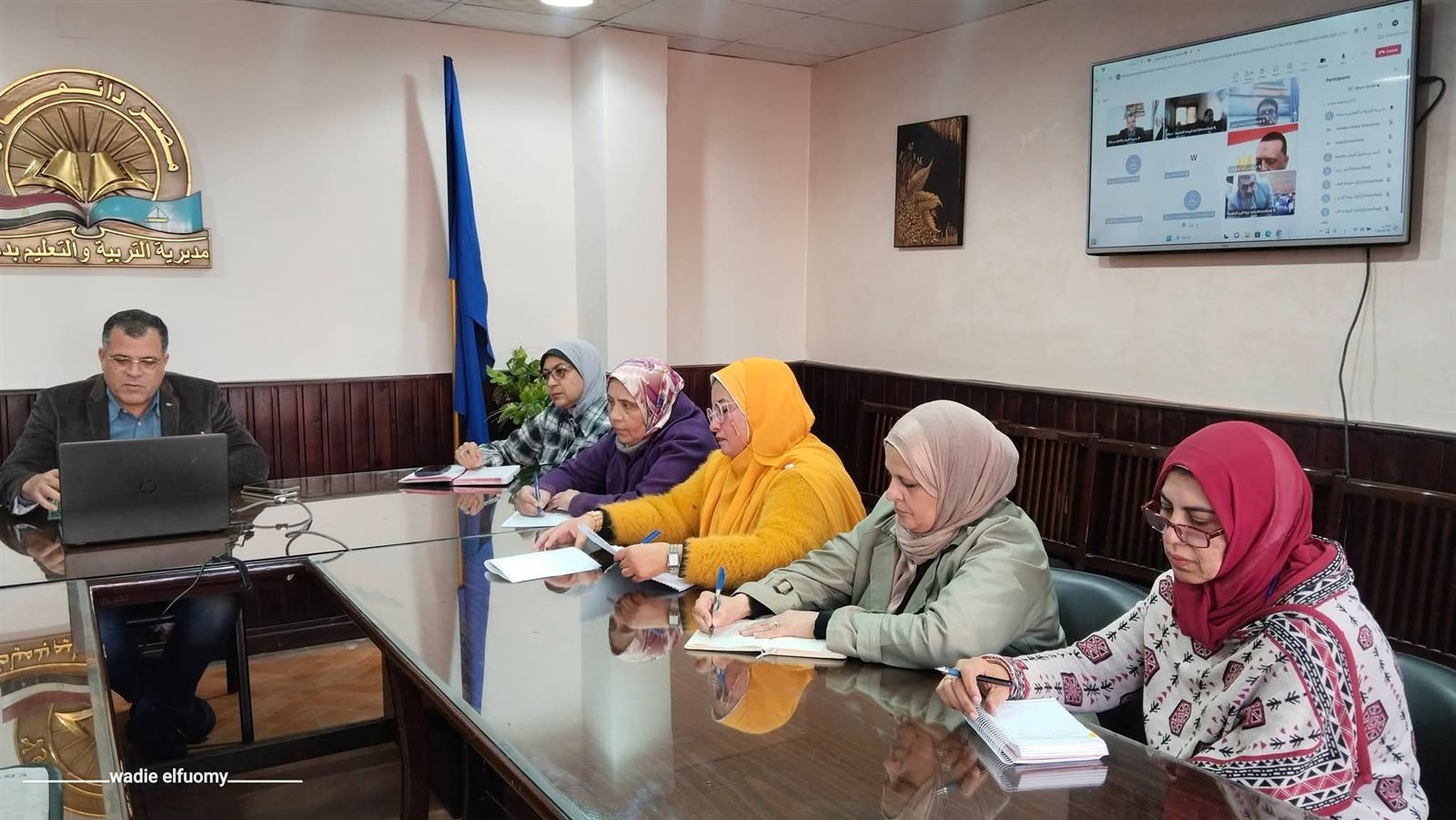 عقد ياسر عماره وكيل وزارة التربية والتعليم بدمياط، اجتماعًا موسعًا اليوم عبر تقنية "الفيديو كونفرانس"، لمناقشة استعدادات امتحانات الفصل الدراسي الأول لصفوف النقل والشهادة الإعدادية.