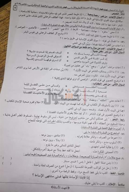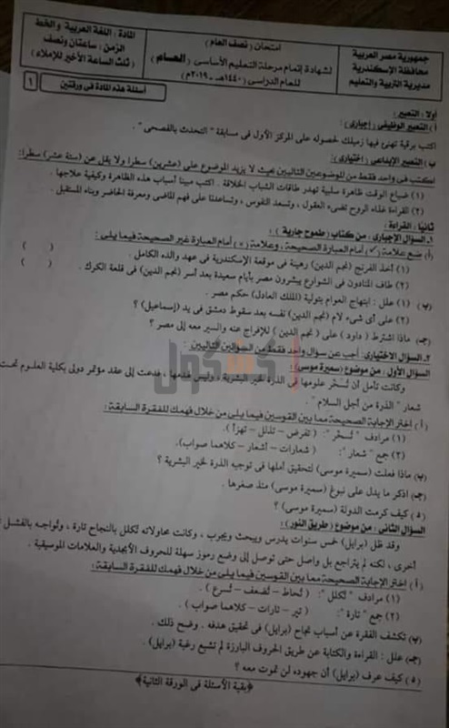 ننشر امتحان اللغة العربية لطلاب الإعدادية بالإسكندرية