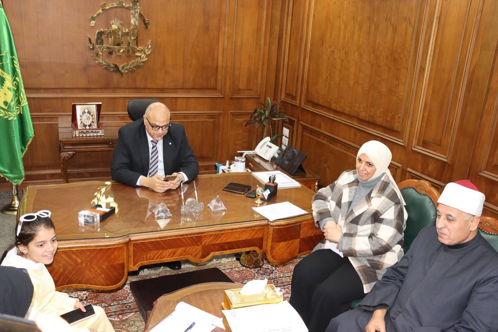 محافظ القليوبية يستقبل الطالبة الفلسطينية "ريتاج" لإنهاء إجراءات التحاقها بمعهد أزهري