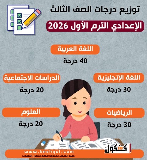 كشفت وزارة التربية والتعليم والتعليم الفني، توزيع درجات الشهادة الإعدادية لطلاب الصف الثالث الإعدادي، للفصل الدراسي الأول، حيث جاءت على النحو التالي: