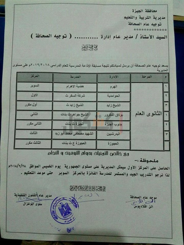 جاء بناء على اختبارات مكثفة لإدارة توجيه عام الصحافة بالادارة التعليمية بالجيزة.