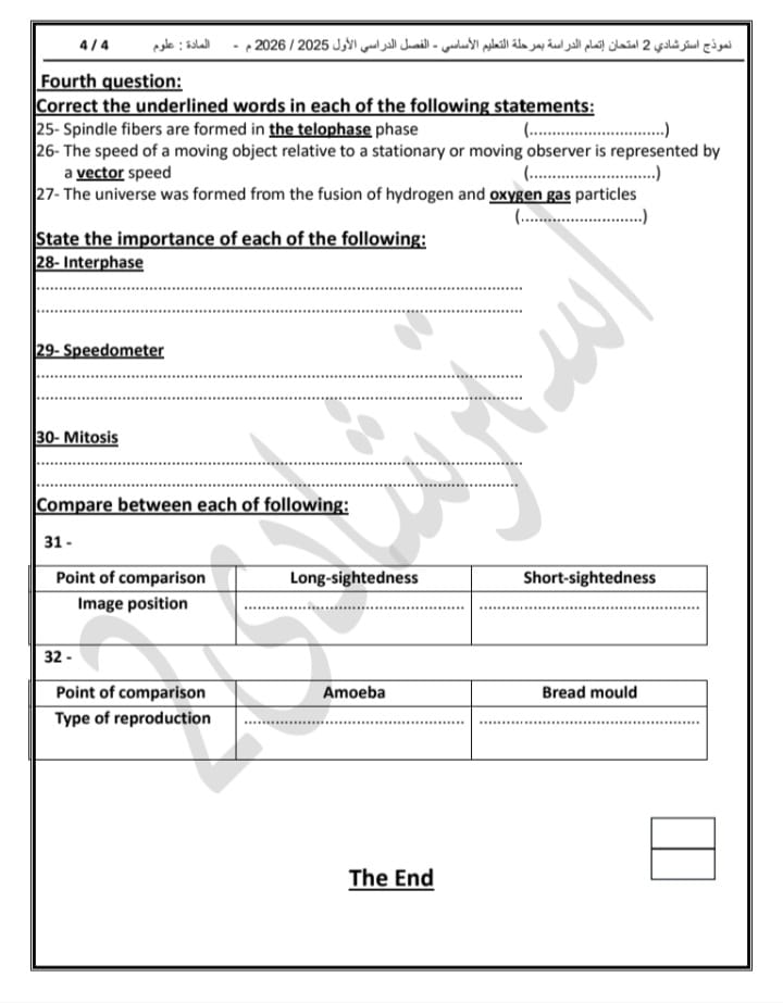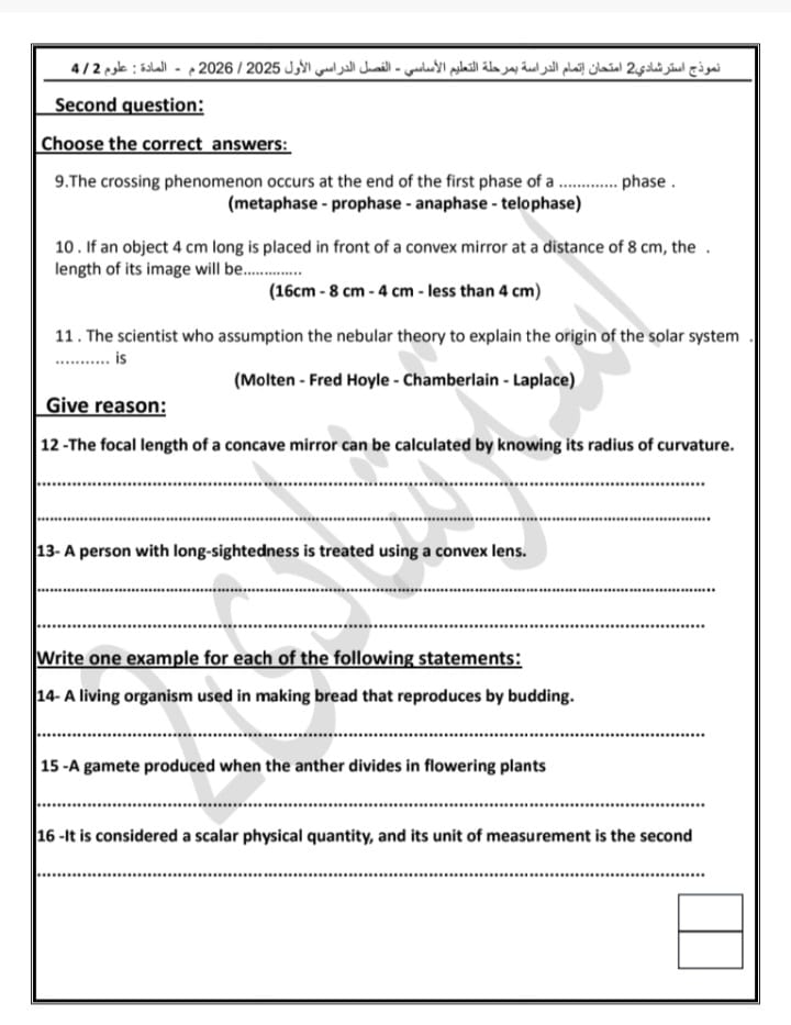 النموذج الاسترشادي الثاني لامتحانات الشهادة الإعدادية بنظام البوكليت بمادة Science