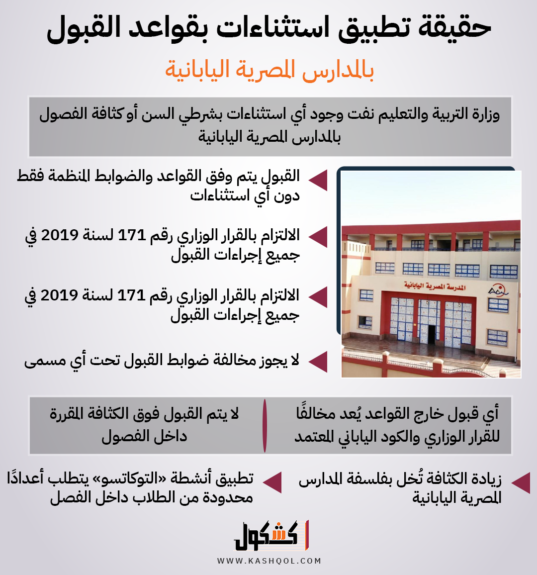 حقيقة تطبيق استثناءات بقواعد القبول بالمدارس المصرية اليابانية «انفوجراف»