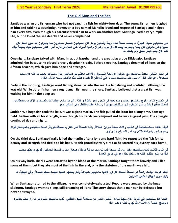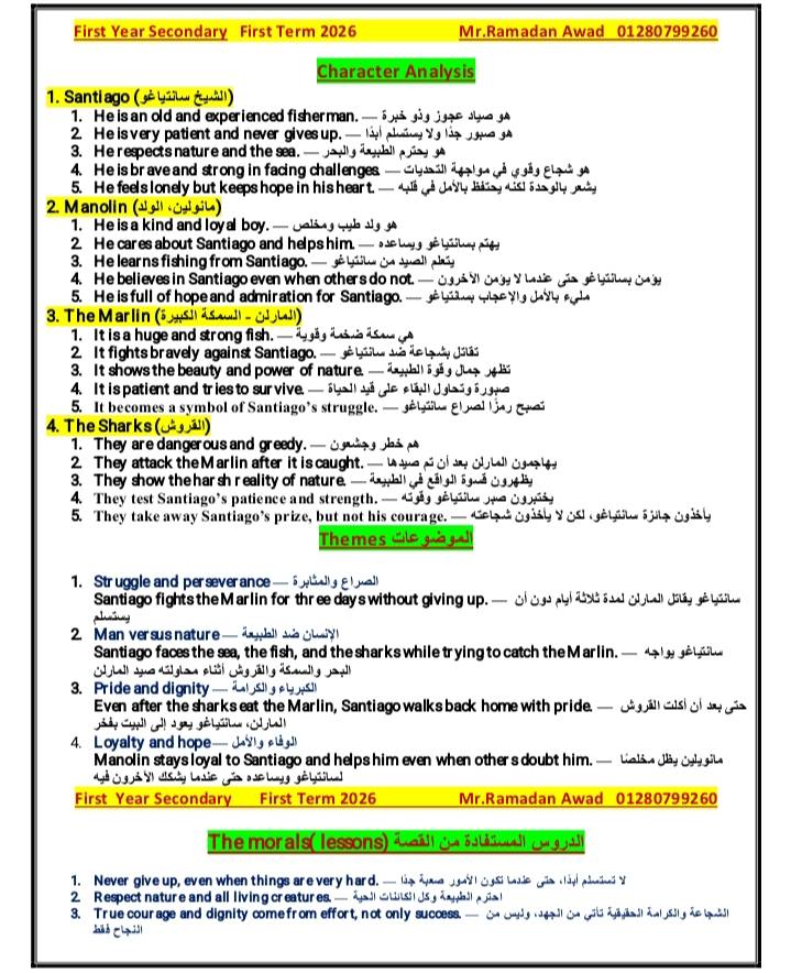 لطلاب الصف الأول الثانوي.. ملخص مع أهم الأسئلة المتوقعة في امتحان منتصف العام (انجليزي)