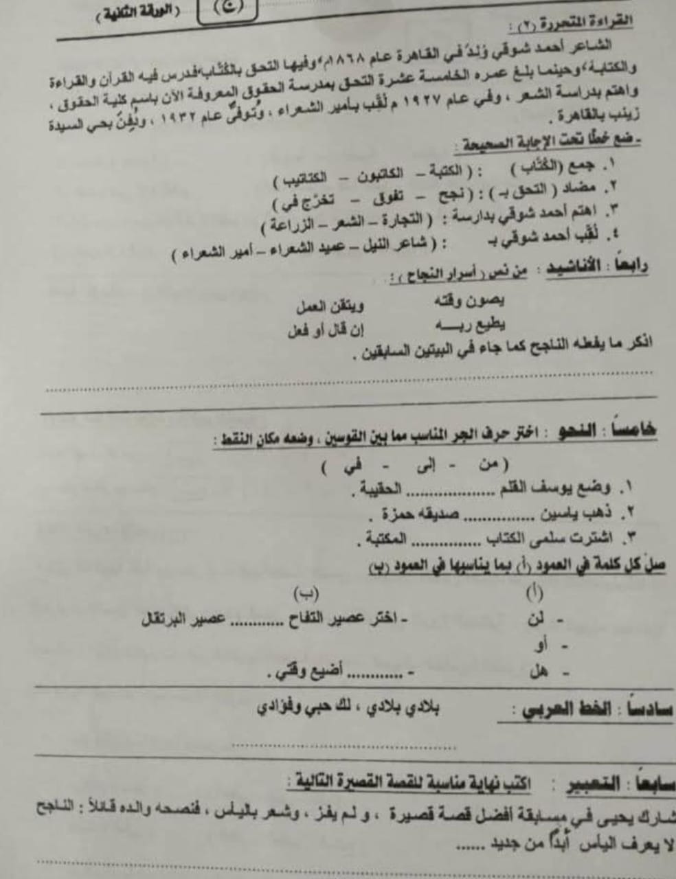 اشتكى أولياء أمور تلاميذ الصف الثالث الابتدائي بمحافظة الدقهلية من صعوبة امتحان اللغة العربية وبخاصة سؤال القرراءة المتحررة بامتحان الترم الأول 2026.