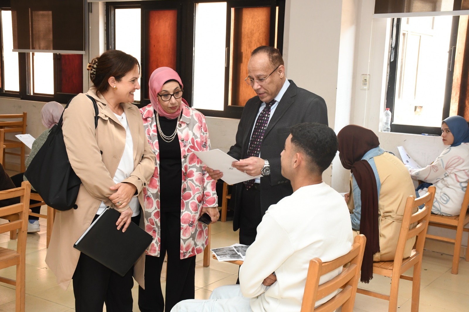 حيث كان في استقباله خلال الجولة الدكتورة فاتن العليمي عميد كلية السياحة والفنادق جامعة قناة السويس، والدكتورة سمر مصلح وكيل الكلية لشئون خدمة المجتمع وتنمية البيئة.