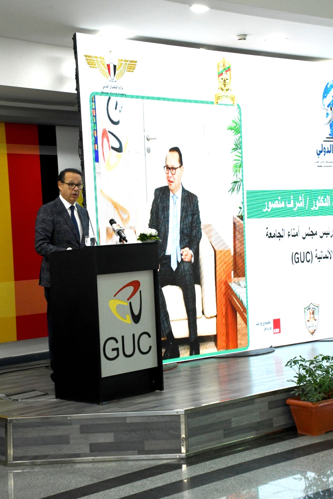 ومن جانبه، قال الدكتور أشرف منصور، رئيس مجلس أمناء الجامعة الألمانية بالقاهرة، في كلمته خلال المؤتمر، إنه يرحب بالحضور، معربًا عن سعادته باستضافة المؤتمر، مضيفا أن الجامعة الألمانية بالقاهرة تعتز بدورها كشريك فاعل في دعم قضايا الدولة المصرية، وتعزيز الحوار العلمي والقانوني على المستويين الوطني والدولي، مشيرًا إلى أن استضافة الجامعة لهذا المؤتمر الدولي الهام، الذي تنظمه هيئة قضايا الدولة احتفالًا بمرور مائة وخمسين عامًا على إنشائها، تمثل شهادة تقدير لدور الهيئة العريق في حماية المشروعية، وترسيخ سيادة القانون، وصون الحقوق والمصالح العامة للدولة.