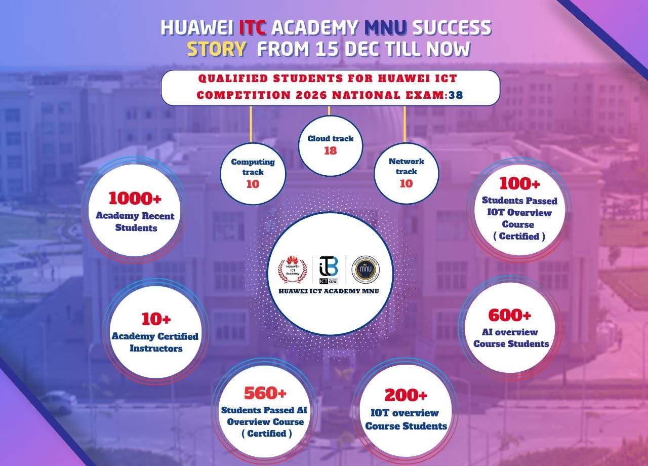 تواصل أكاديمية هاواوي جامعة المنصورة الأهلية تحقيق إنجازات ملموسة منذ انطلاقها الرسمي في 25 ديسمبر 2025، بما يعكس التزامها بإعداد كوادر تقنية مؤهلة وفقًا لأحدث المعايير العالمية، وذلك في إطار النجاحات المتواصلة لأكاديمية هواوي لتكنولوجيا المعلومات والاتصالات بجامعة المنصورة الأهلية وتحت رعاية الدكتور شريف خاطر رئيس جامعة المنصورة الأهلية وريادة الدكتور إيهاب عبدالحي قائم بعمل عميد كلية الهندسة ومدير أكاديمية هاواوي جامعة المنصورة الأهلية.