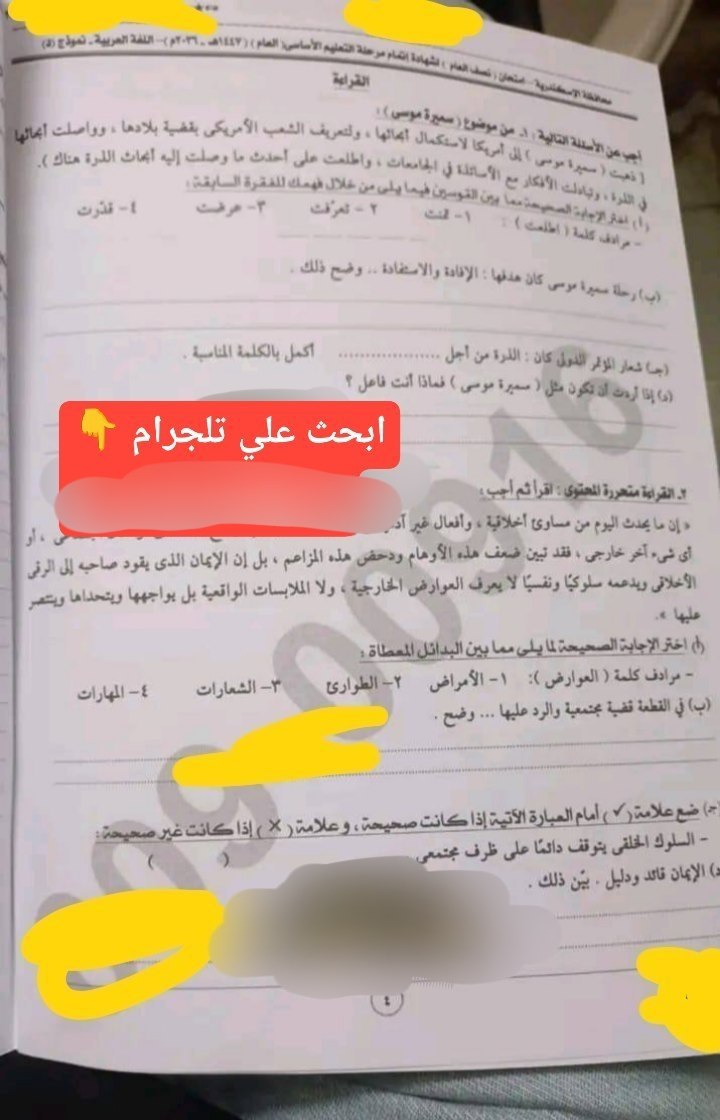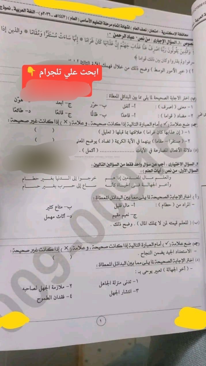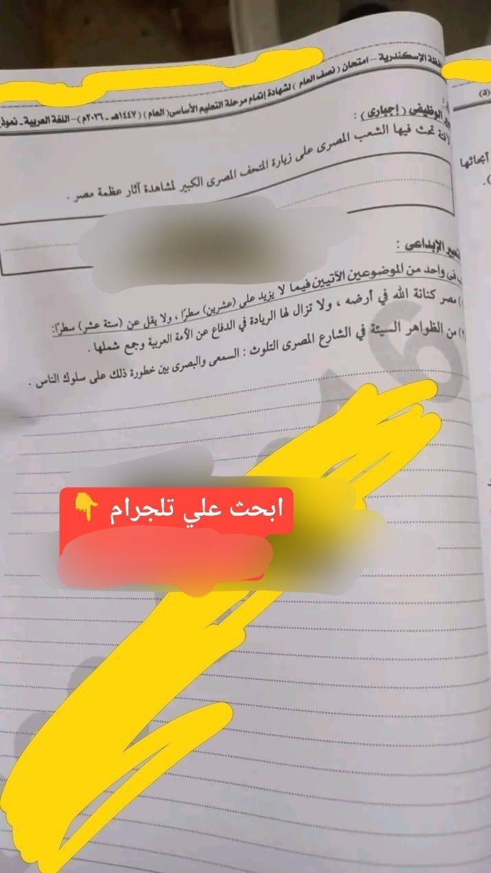 انطلقت اليوم السبت الموافق 17 يناير 2026، امتحانات الصف الثالث الإعدادي الترم الأول 2026، بمادة اللغة العربية، لذا نشرت مجموعات الغش الإلكتروني إجابة امتحان اللغة العربية للشهادة الإعدادية 2026 الإسكندرية، رغم قرار وزارة التربية والتعليم والتعليم الفني، بحظر استخدام الهواتف المحمولة والساعات الذكية بلجان الامتحانات، لمنع الغش.