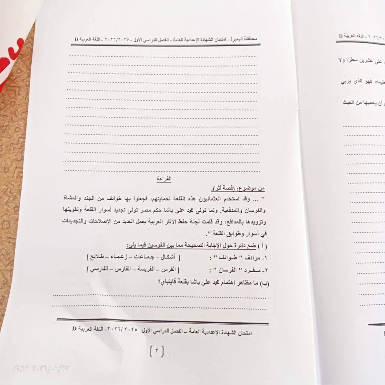 ويمكن التأكد من إجابات طلاب الشهادة الإعدادية من خلال معرفة حل امتحان مادة اللغة العربية الترم الأول 2026 البحيرة، من خلال مطالعة الصور التالية والتأكد من الدرجة التي يحصل عليها الطالب، وفقا لحله.