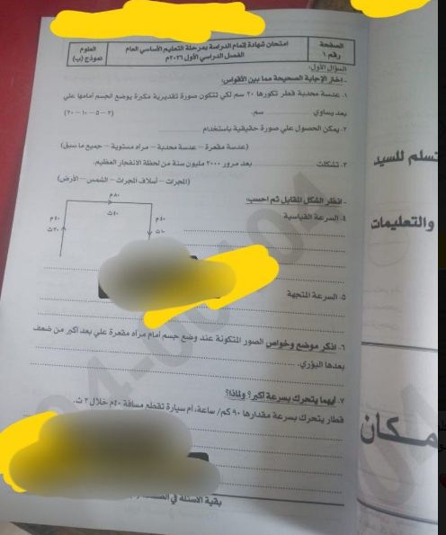 ويمكن الحصول على إجابة امتحان مادة العلوم للصف الثالث الإعدادي ترم أول 2026 سوهاج من خلال مطالعة التقرير التالي، الذي يعتمد على نشر صور لأسئلة امتحان مادة العلوم لطلاب الشهادة الإعدادية الترم الأول بمحافظة سوهاج.